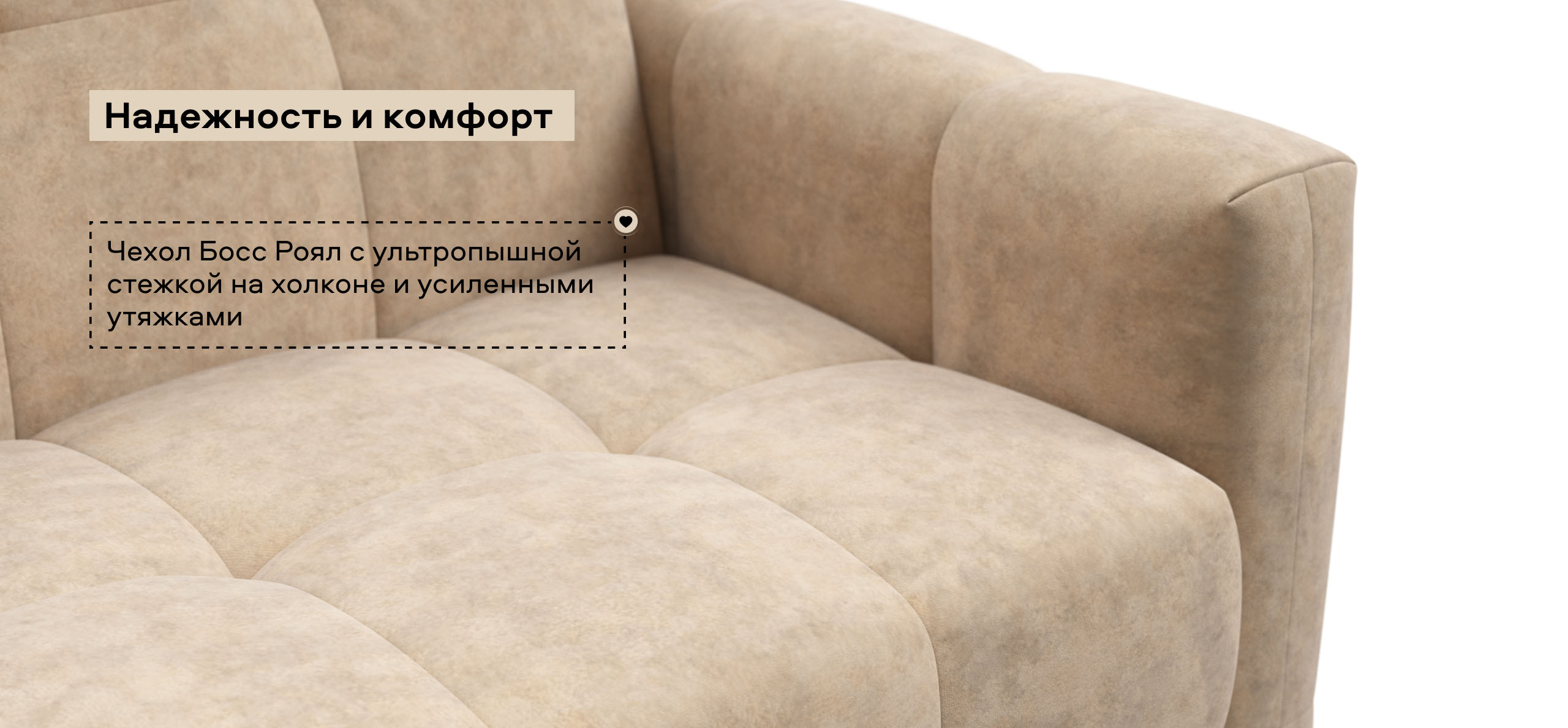 Чехол Босс Роял с ультропышной стежкой на холконе и усиленными утяжками делает диван пышным и воздушным, а усиленные утяжки надежно фиксируют чехол и защищают его от растяжения.