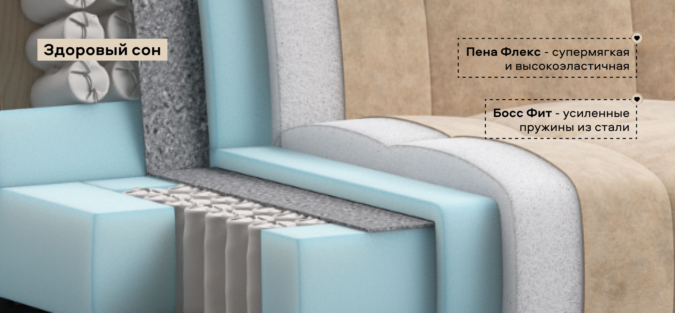 Инновационный анатомический матрас в диване, высотой 15 см., выполнен из полноценного независимого пружинного блока Босс Фит