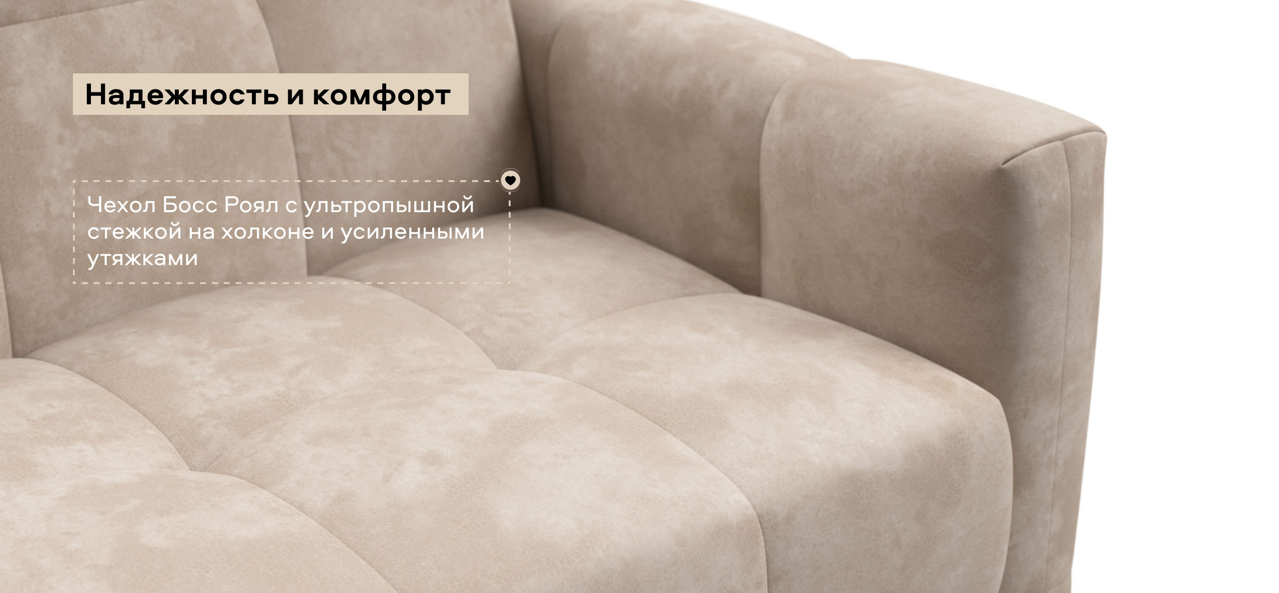 Чехол Босс Роял с ультропышной стежкой на холконе и усиленными утяжками делает диван пышным и воздушным, а усиленные утяжки надежно фиксируют чехол и защищают его от растяжения.