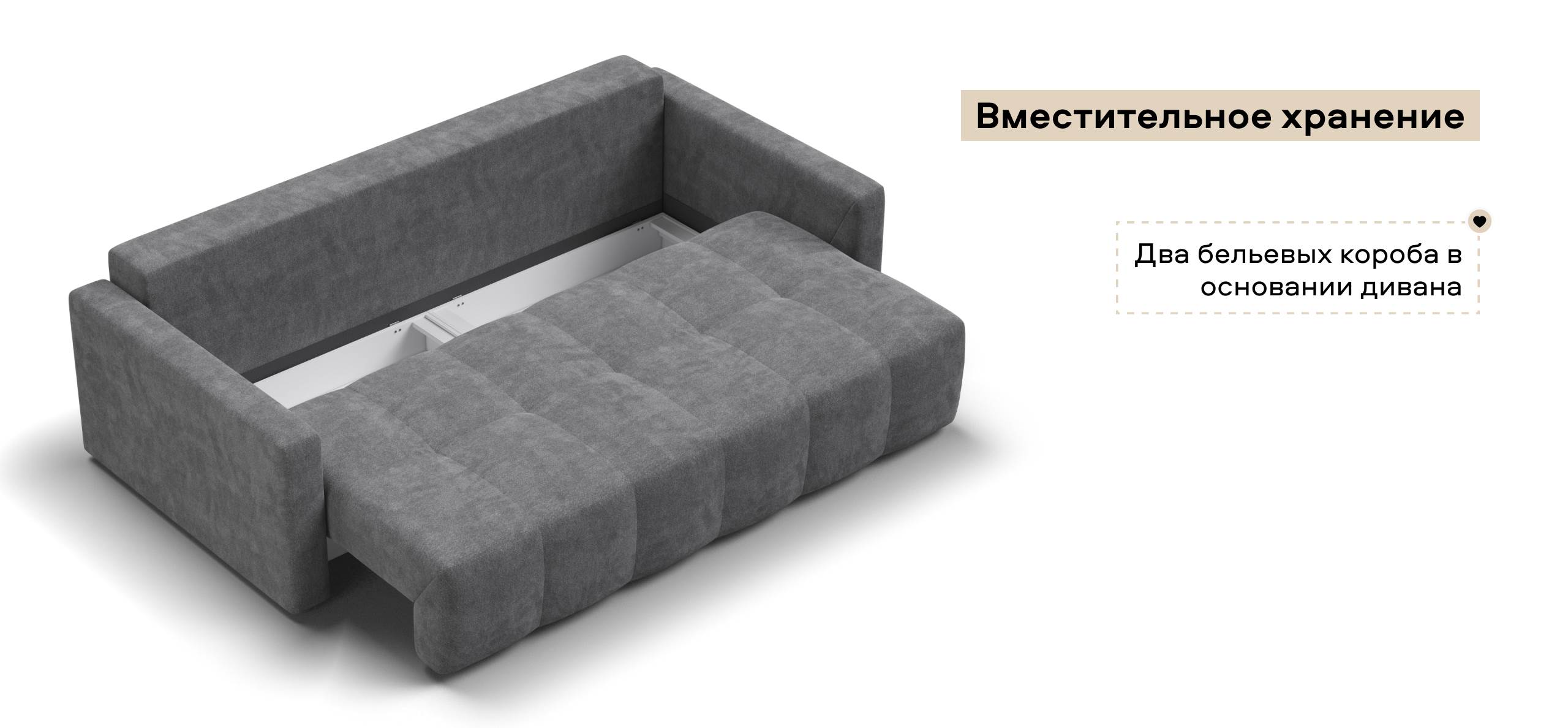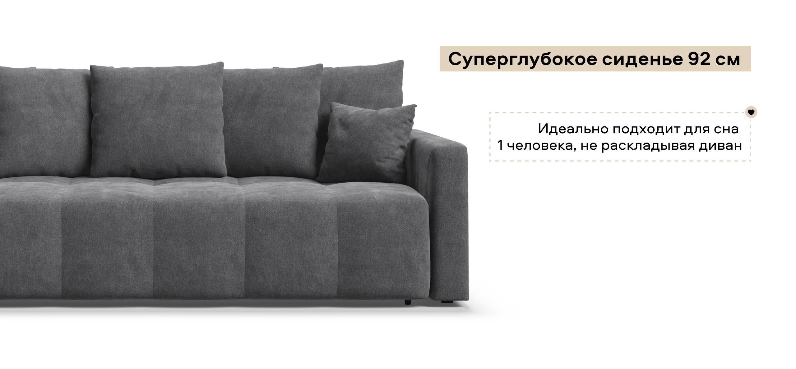 Сиденье Босс Дейбед глубиной 92 см идеально подходит для сна одного человека, даже без раскладывания дивана. Независимый пружинный блок в основании и механизм "еврокнижка" превращают диван в комфортное спальное место с анатомическим эффектом.