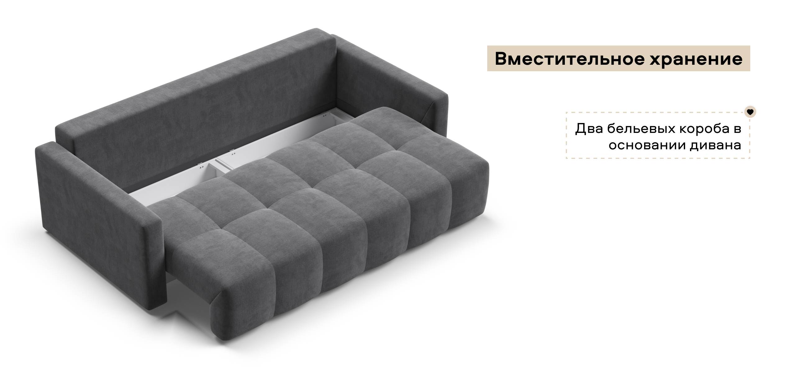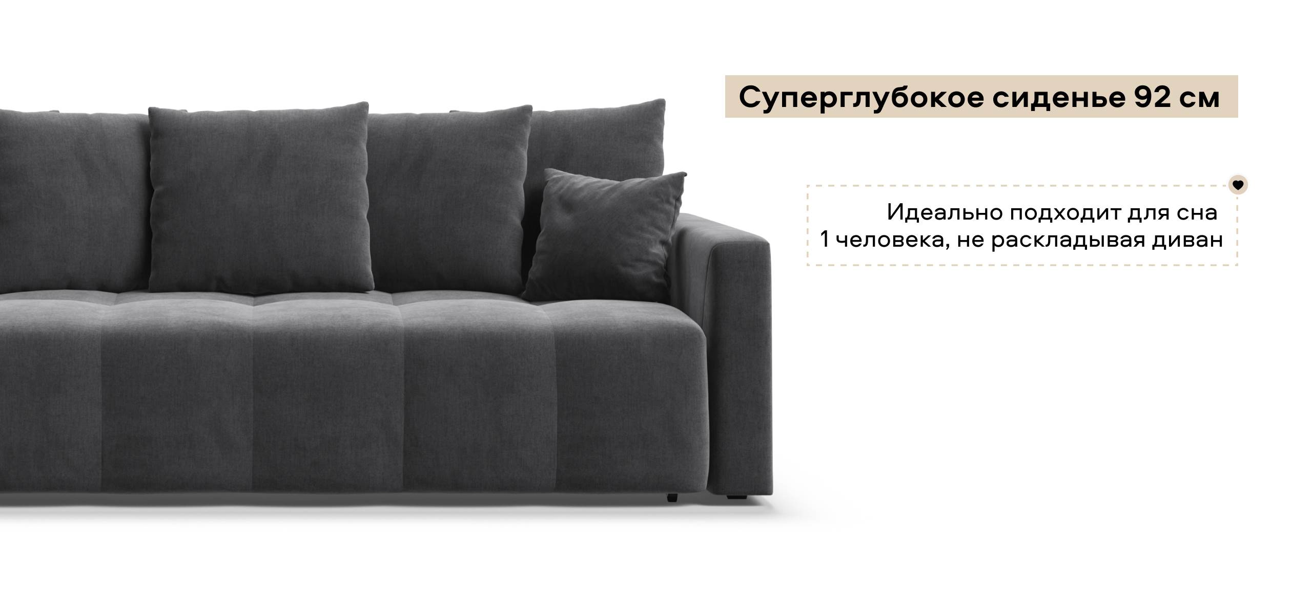 Сиденье Босс Дейбед глубиной 92 см идеально подходит для сна одного человека, даже без раскладывания дивана. Независимый пружинный блок в основании и механизм "еврокнижка" превращают диван в комфортное спальное место с анатомическим эффектом.