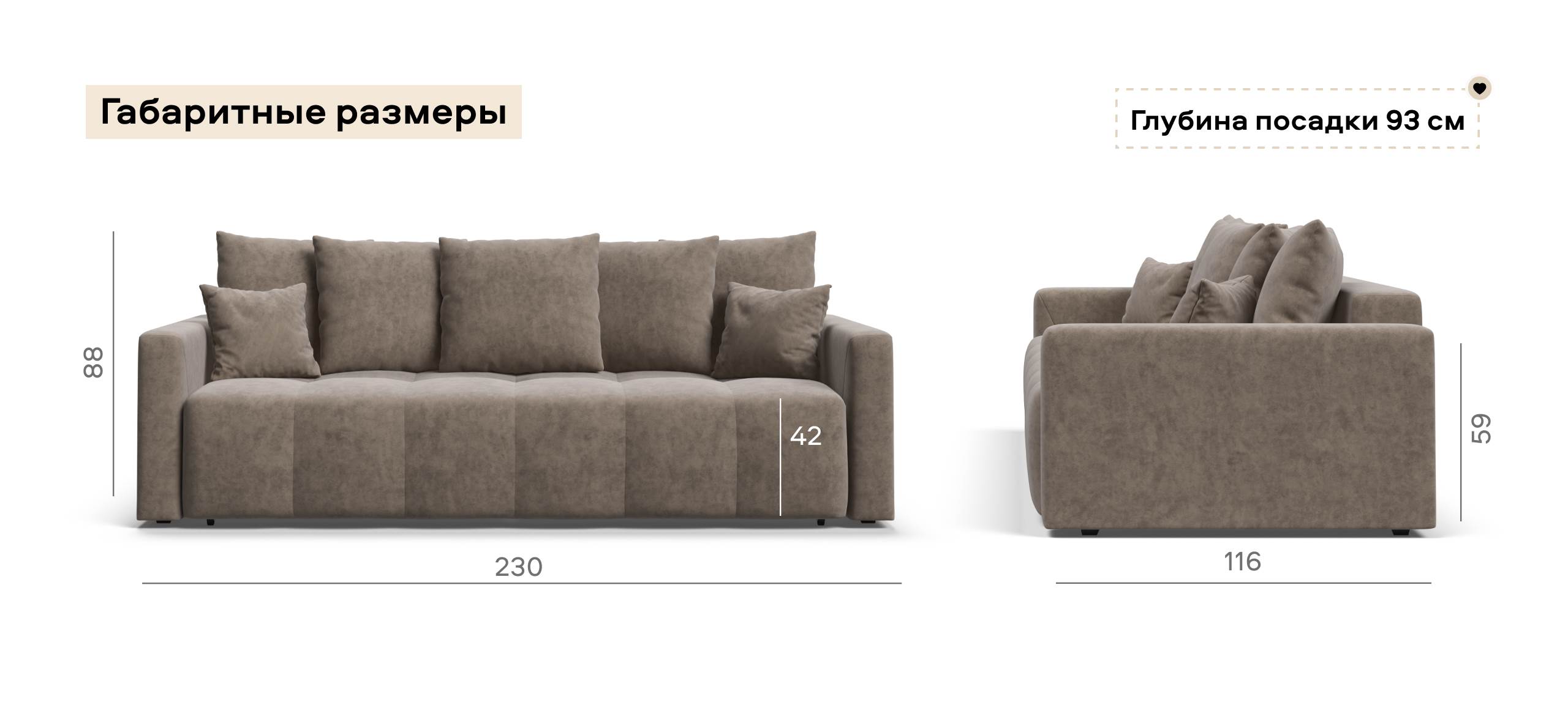 Сиденье Босс Дейбед глубиной 92 см идеально подходит для сна одного человека, даже без раскладывания дивана. Независимый пружинный блок в основании и механизм "еврокнижка" превращают диван в комфортное спальное место с анатомическим эффектом.
