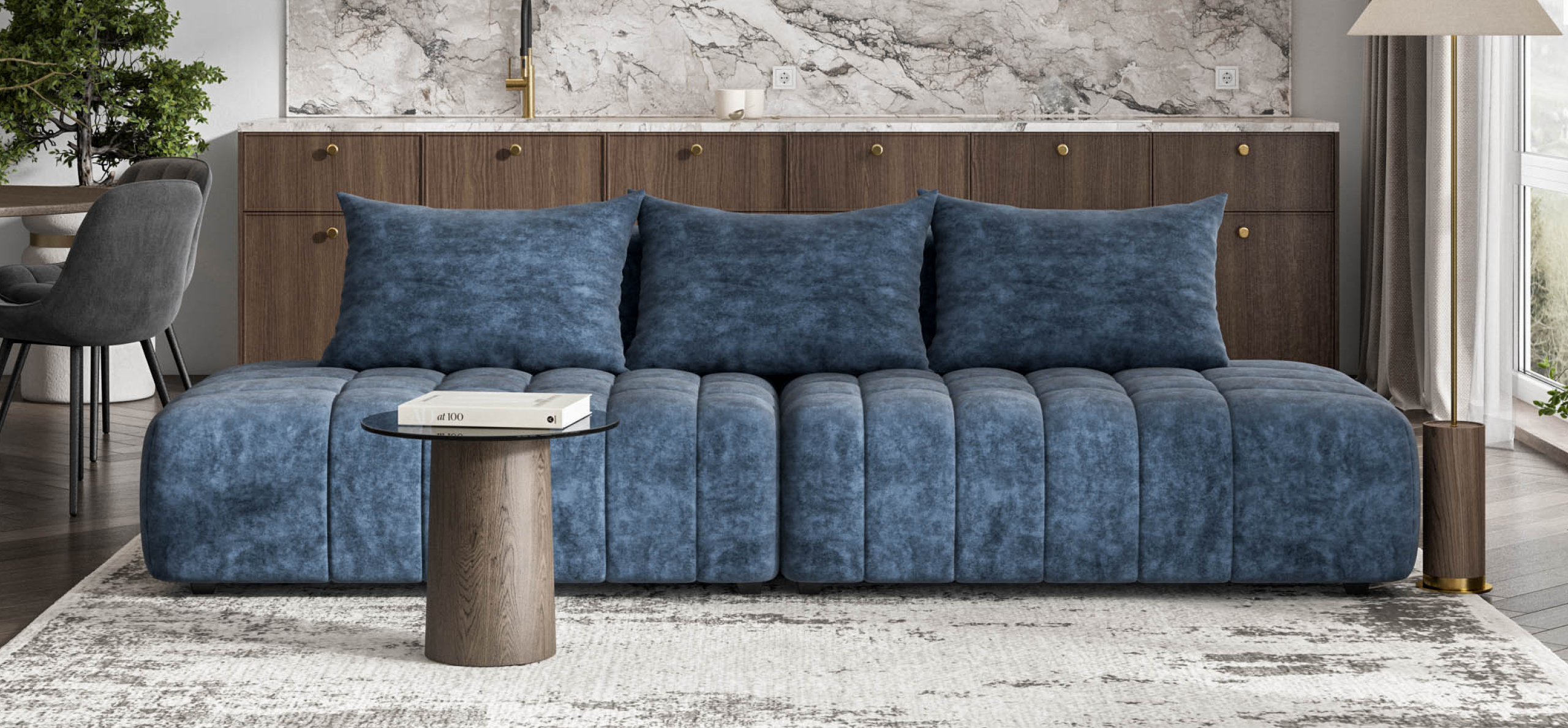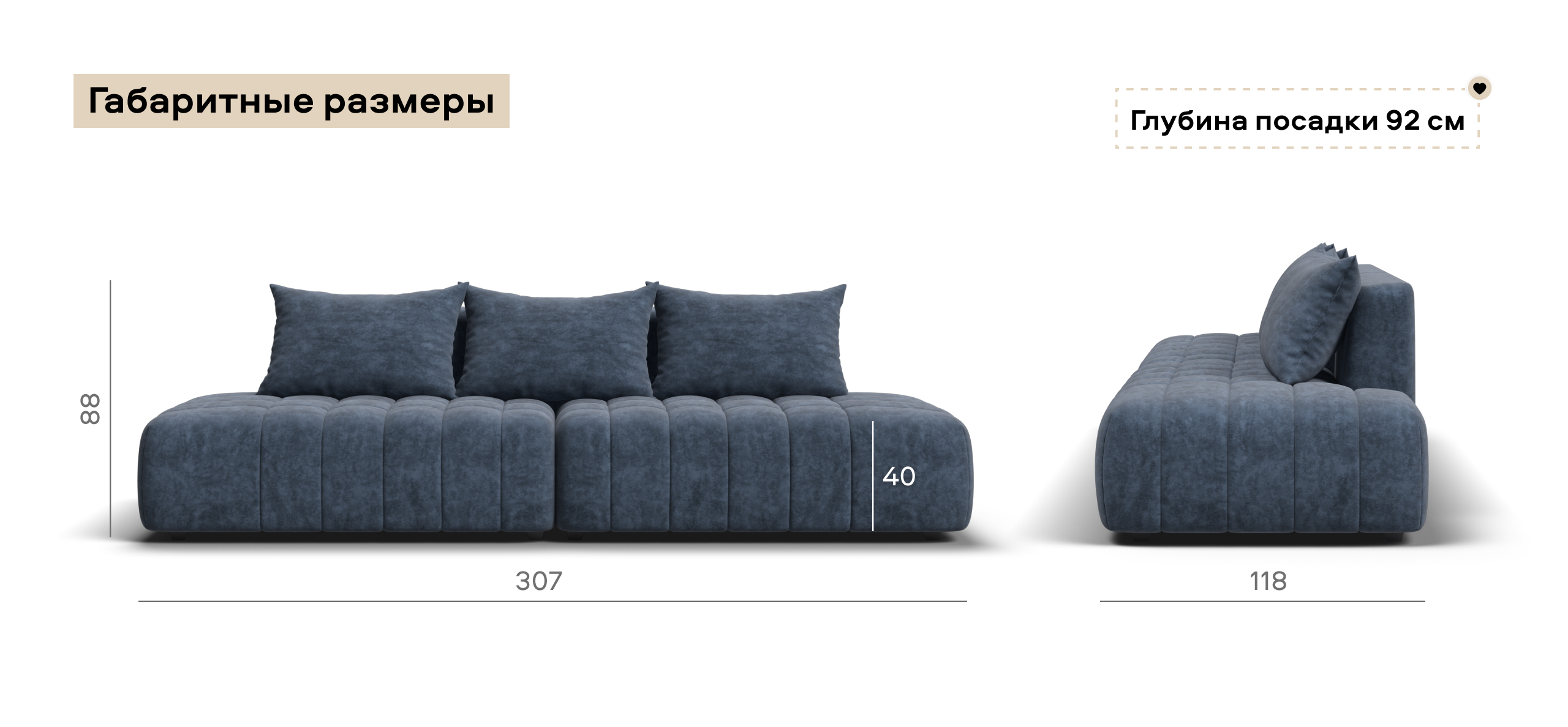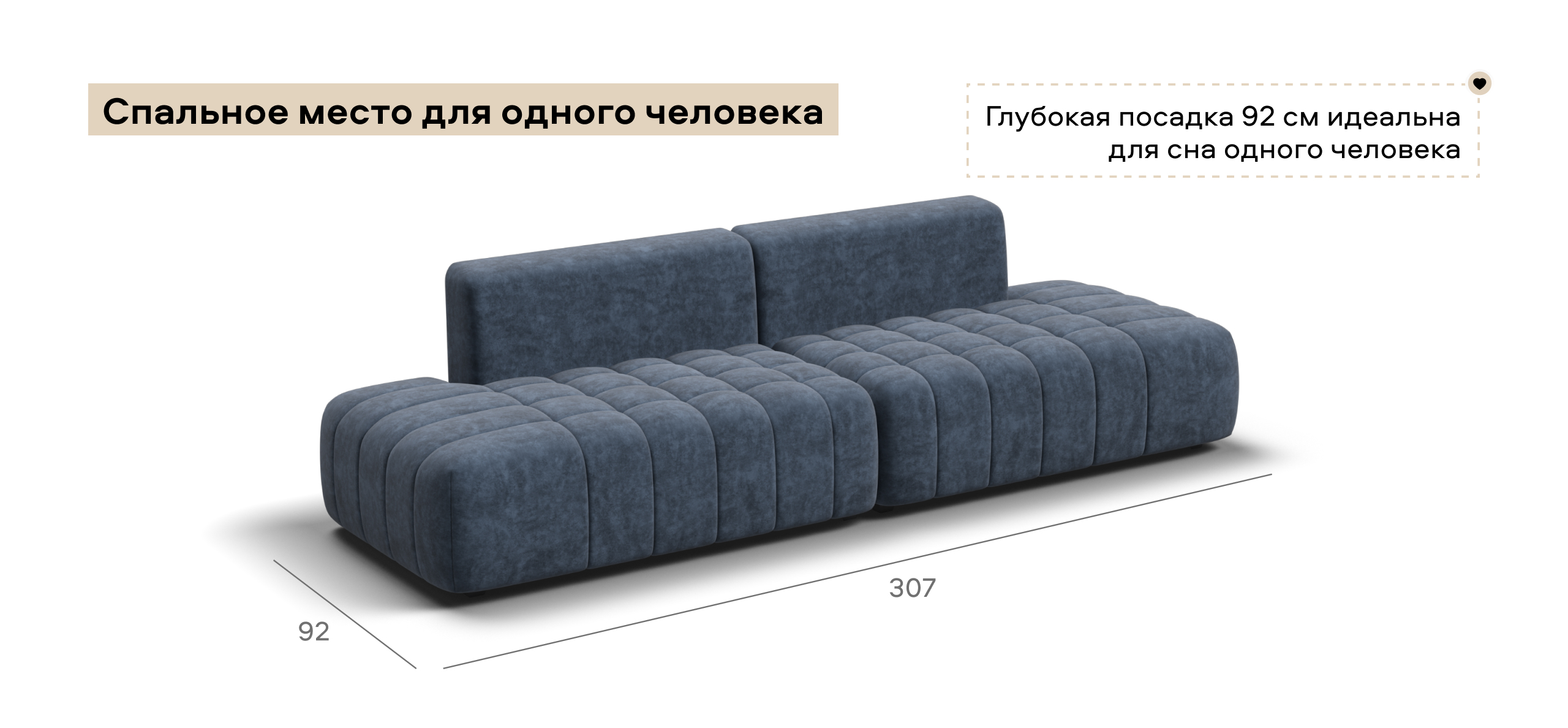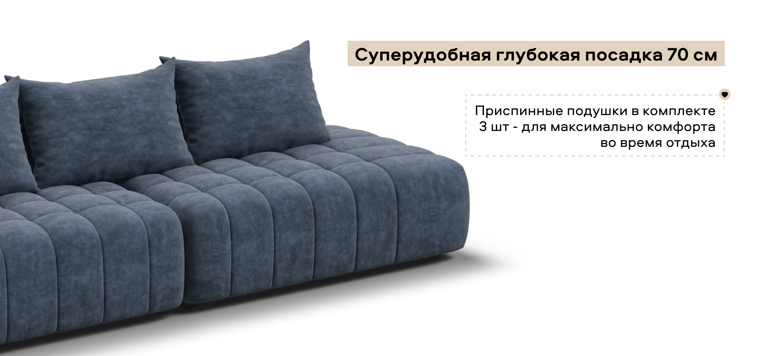 Глубокое сиденье и независимые пружины в основании словно созданы для полного расслабления, а мягкие спинки обеспечивают комфорт без лишних подушек.