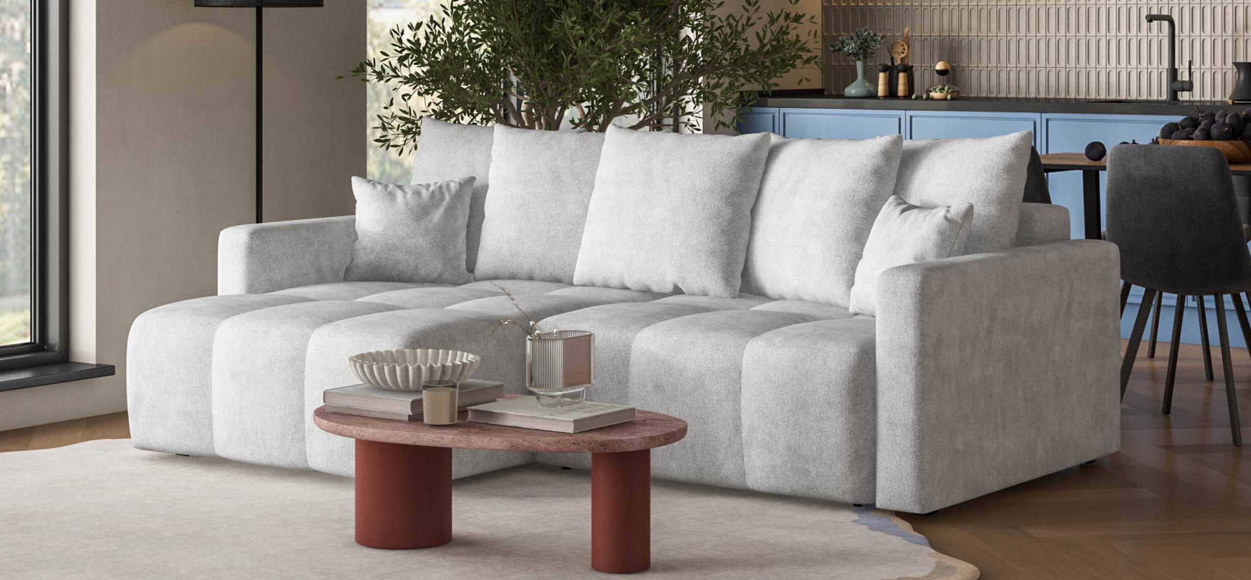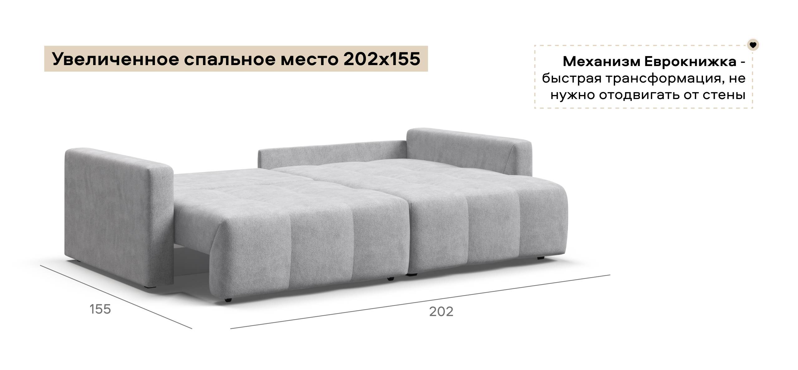 Простой и надежный механизм еврокнижка позволяет ставить диван вплотную к стене
