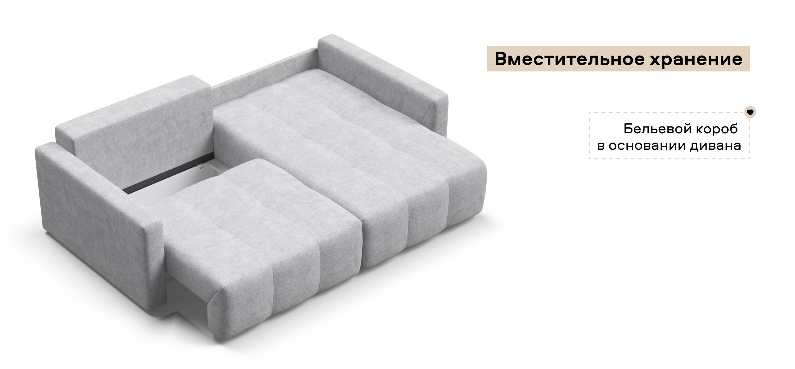 Бельевой короб под посадочной частью - удобное и безопасное хранение постельного белья