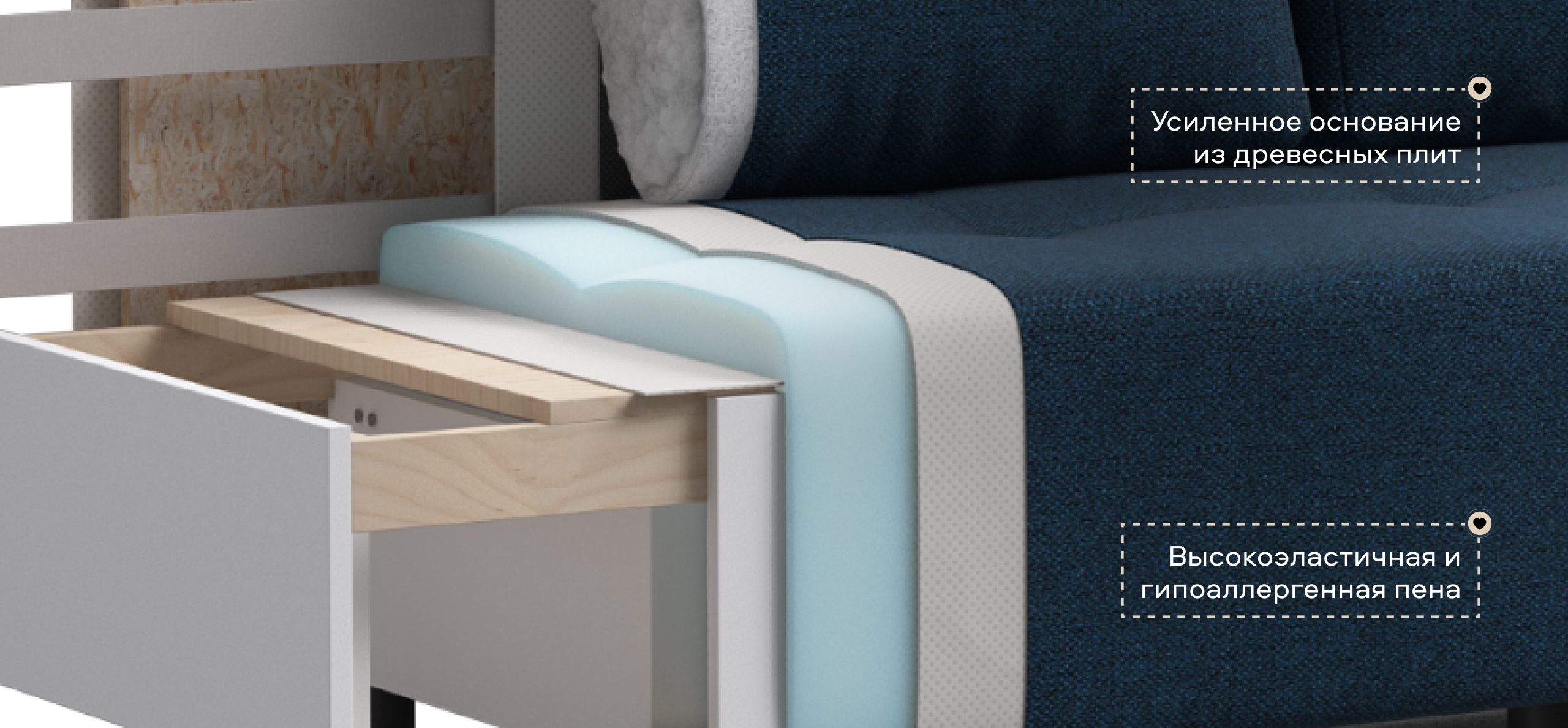 Высокие ножки из высокопрочной стали обеспечивают надежный каркас и под диван свободно заезжает робот-пылесос. Бостон Мини — ваш умный выбор для современных квартир, студий и уютных гостиных.