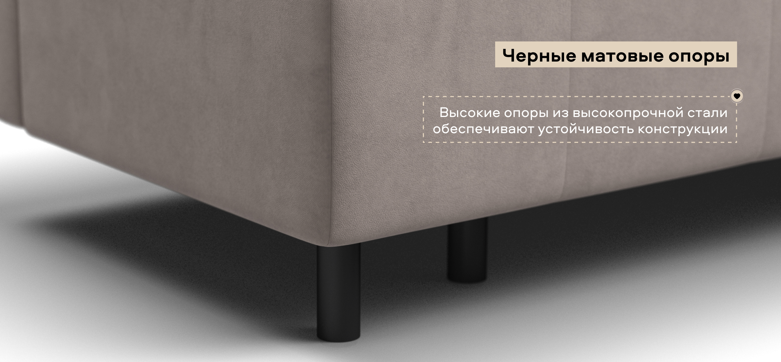 Высокие ножки из высокопрочной стали обеспечивают надежный каркас и под диван свободно заезжает робот-пылесос. Бостон Мини — ваш умный выбор для современных квартир, студий и уютных гостиных.