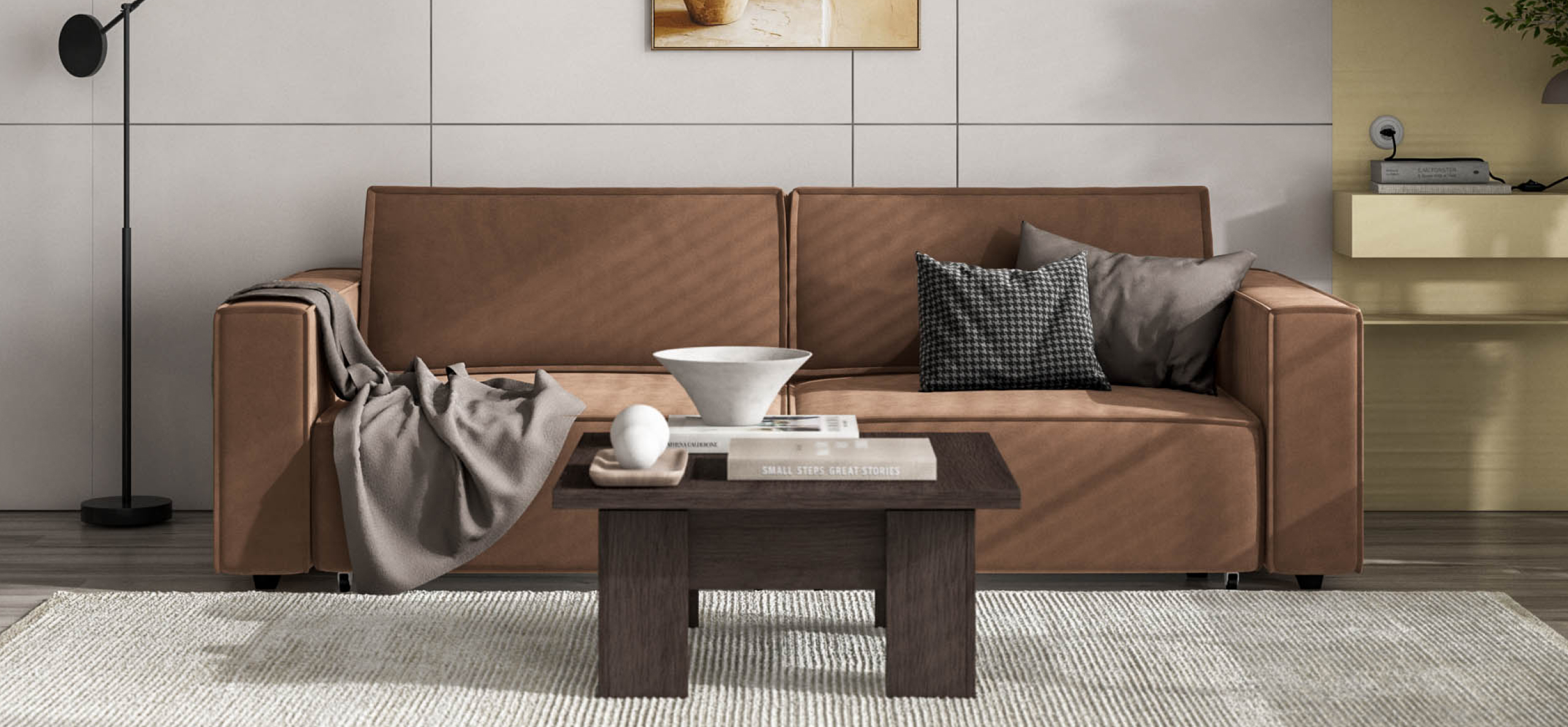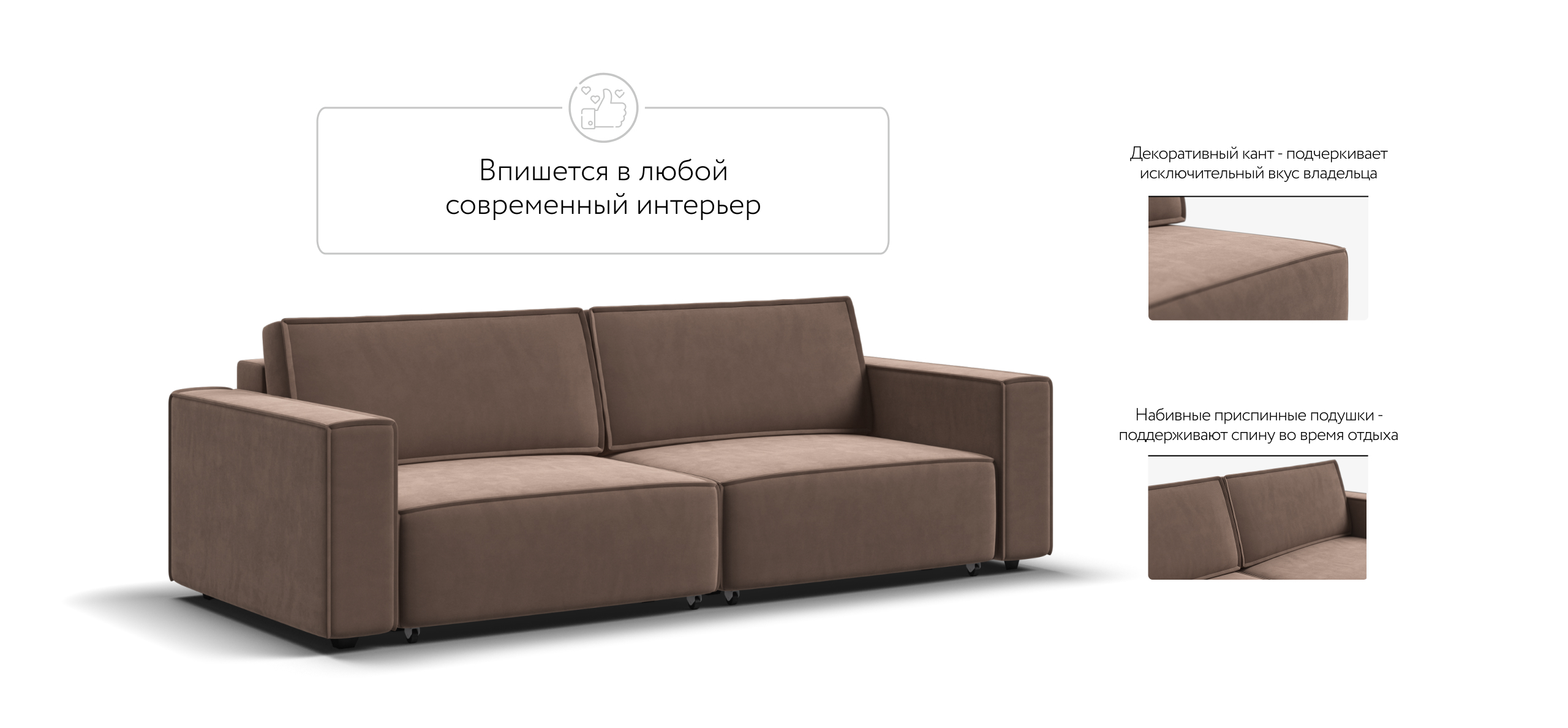 Широкие прямоугольные подлокотники, строгая симметрия и минималистичная отделка идеально дополнит современный интерьер Вашей гостиной.