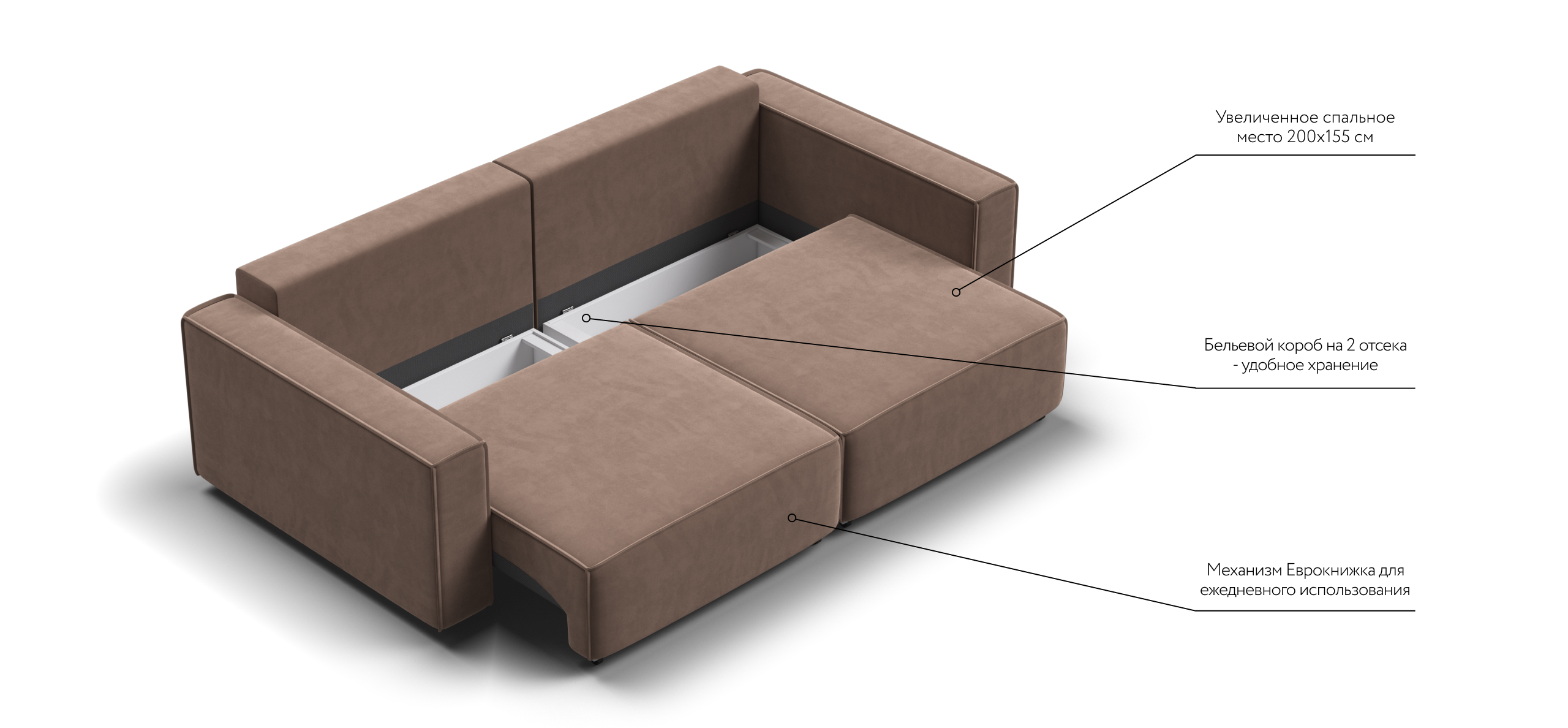 Простой и надежный механизм еврокнижка с легкостью превратит модульную систему в комфортное спальное место.