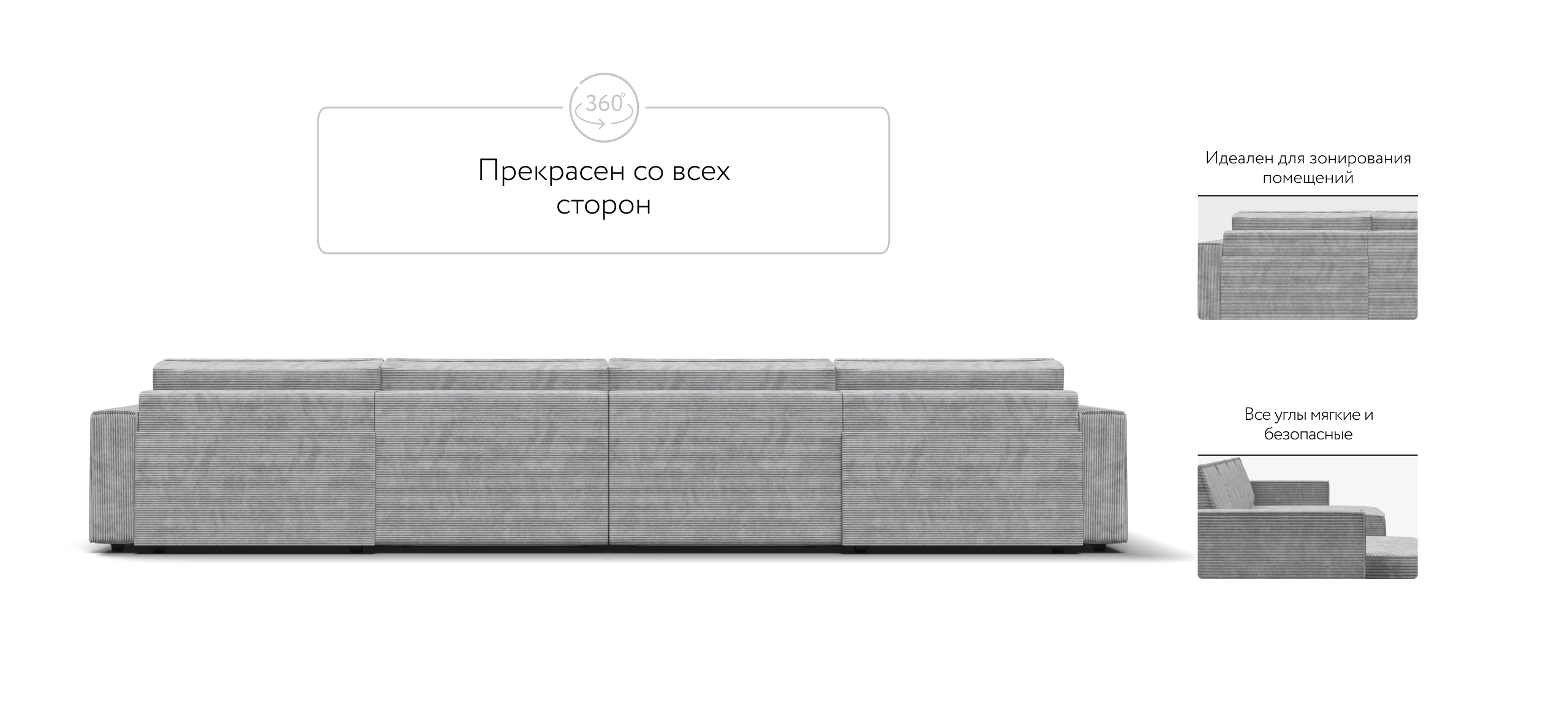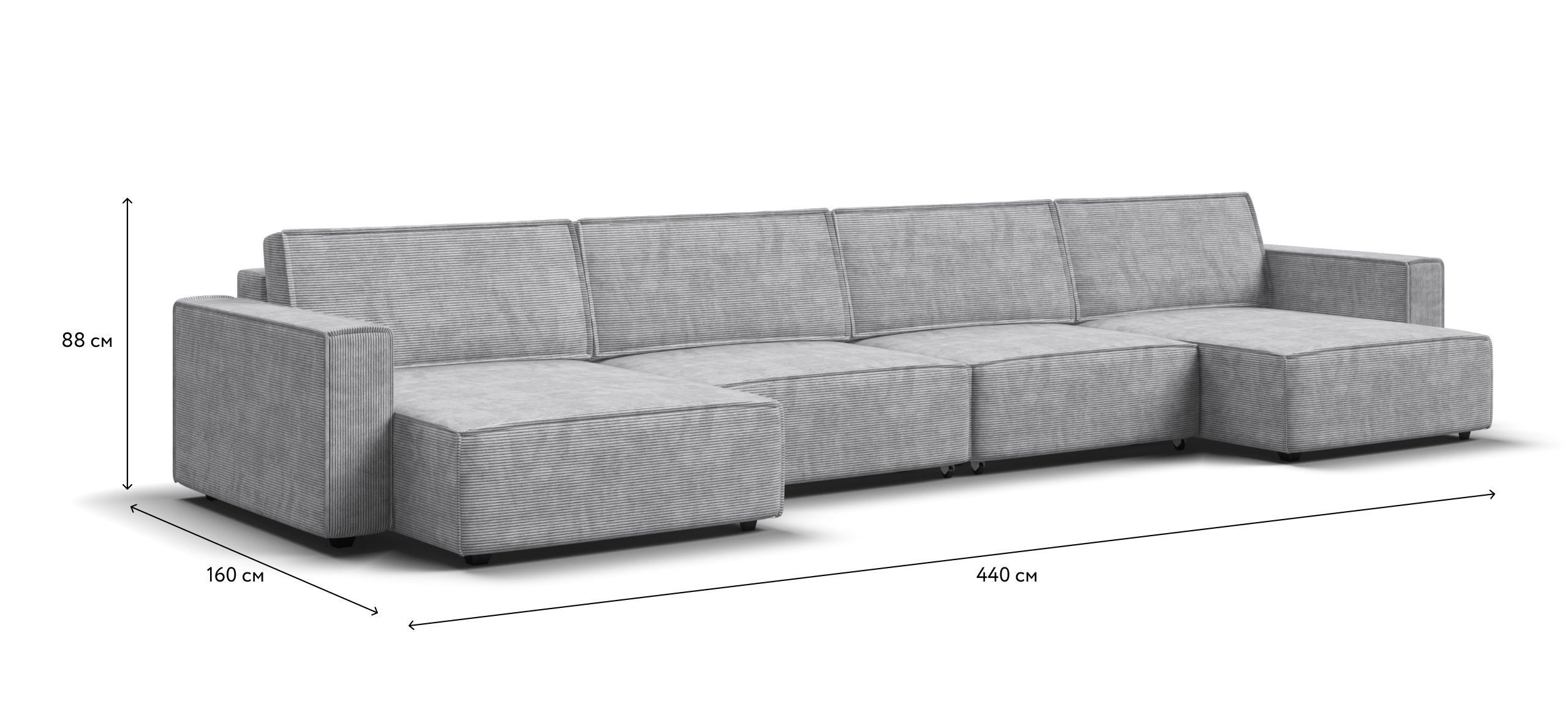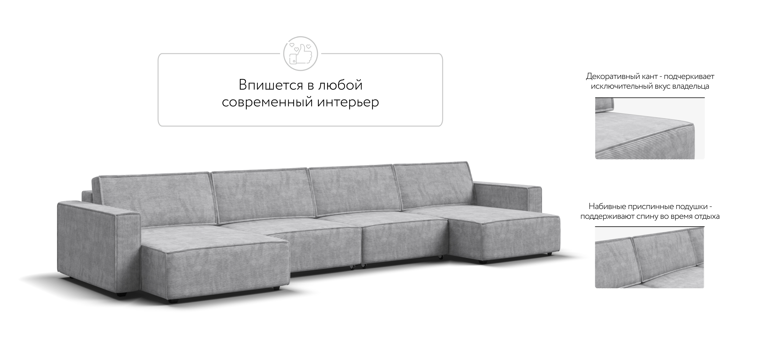 П-образный диван Босс Софт Модуль Вельвет Корд серый