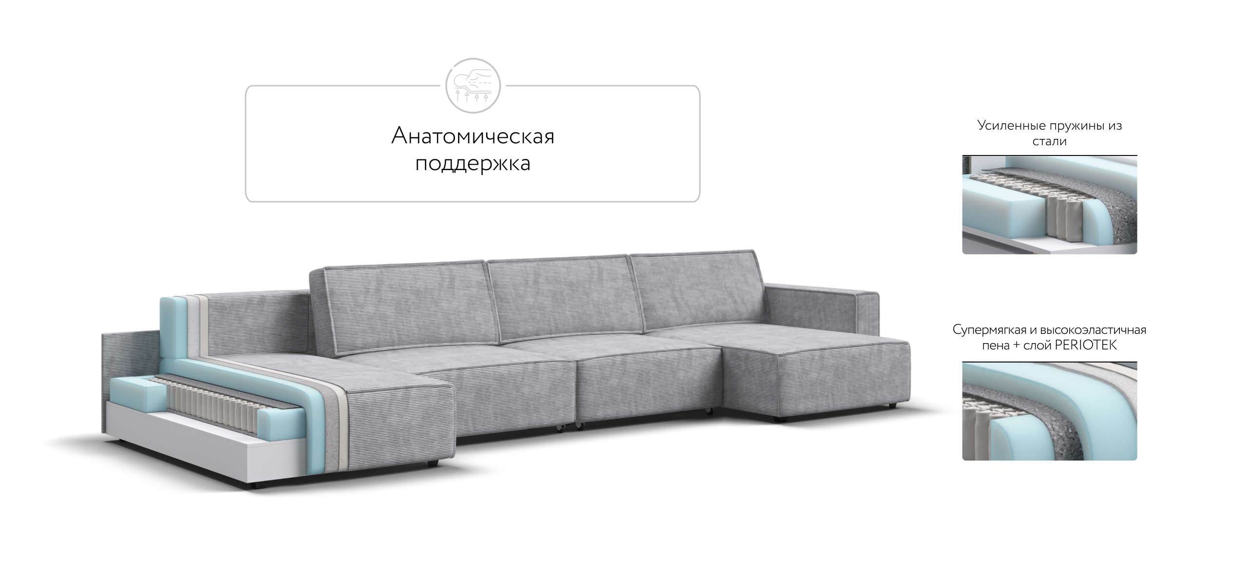 Диван Босс Софт – Модульная система в стиле лофт. Сочетание надежности, стиля и функциональности. Супер удобная глубокая посадка и высокоэластичная пена с дополнительным слоем Периотек создадут максимальный комфорт во время отдыха.