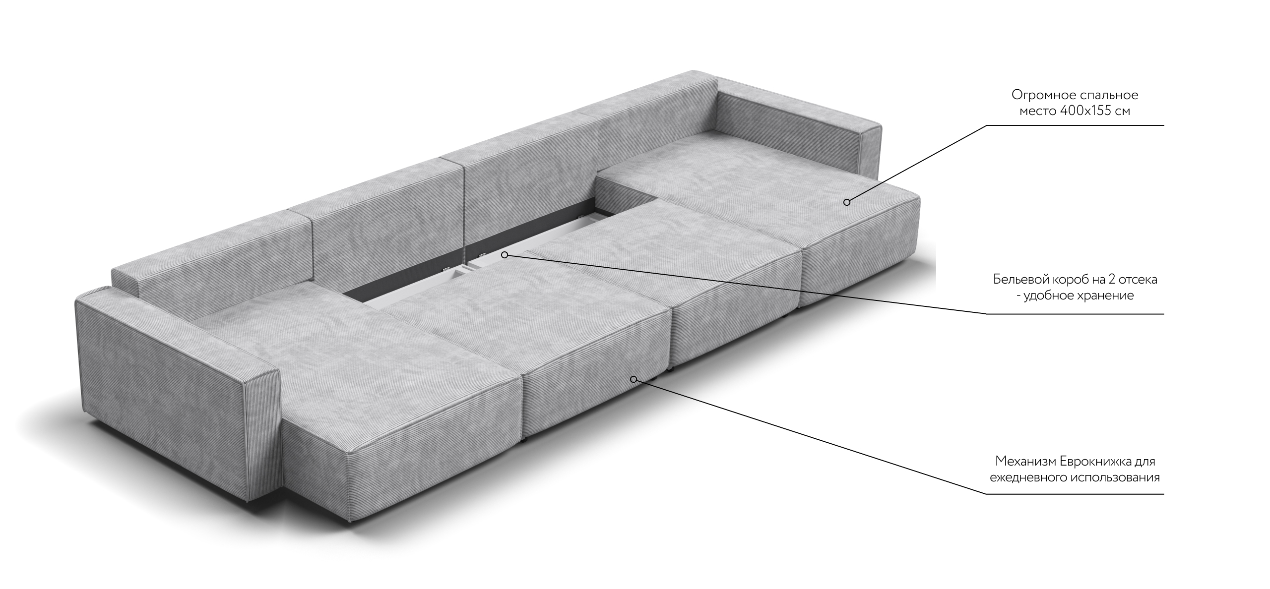 Простой и надежный механизм еврокнижка с легкостью превратит модульную систему в комфортное спальное место.