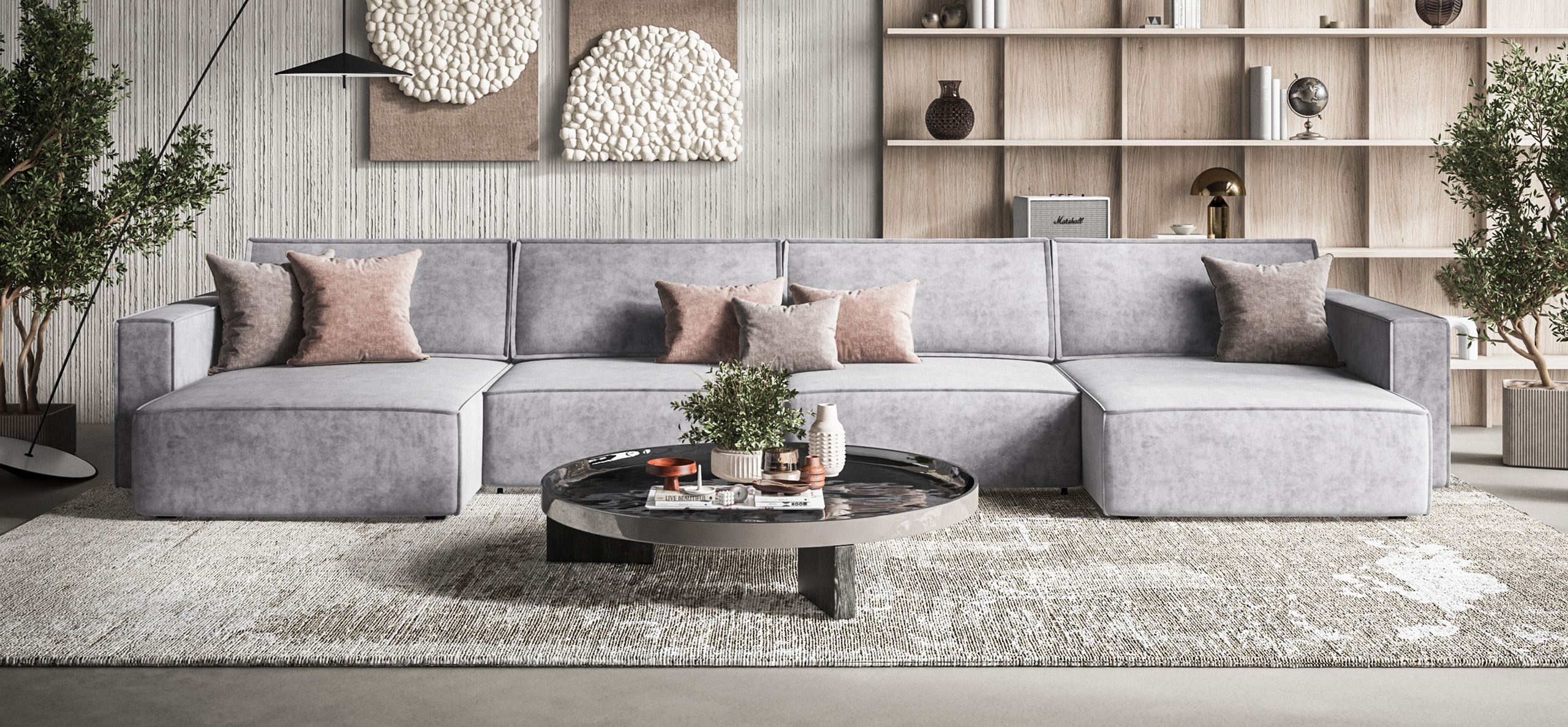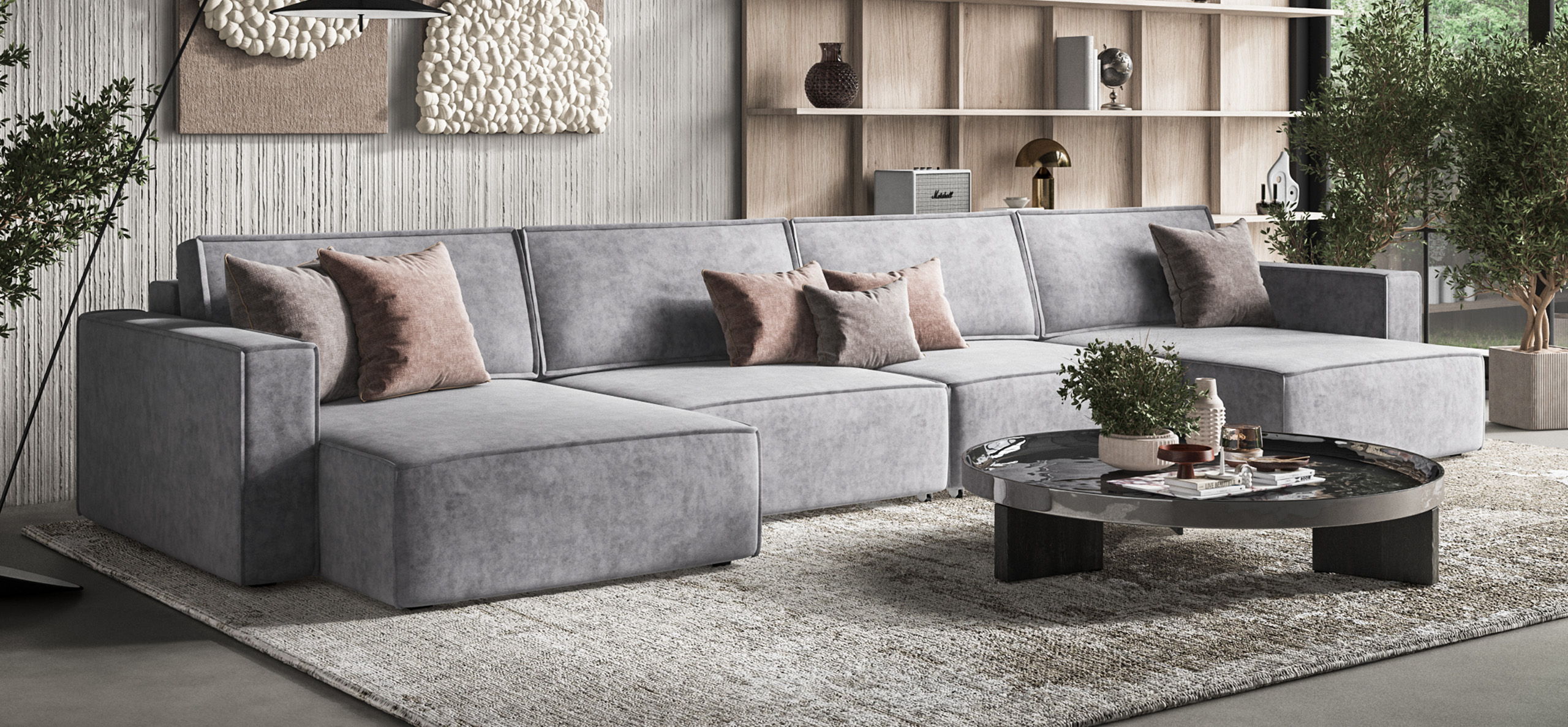 Модульная система позволит создать любую комбинацию от уютного кресла до огромного дивана для большой компании.