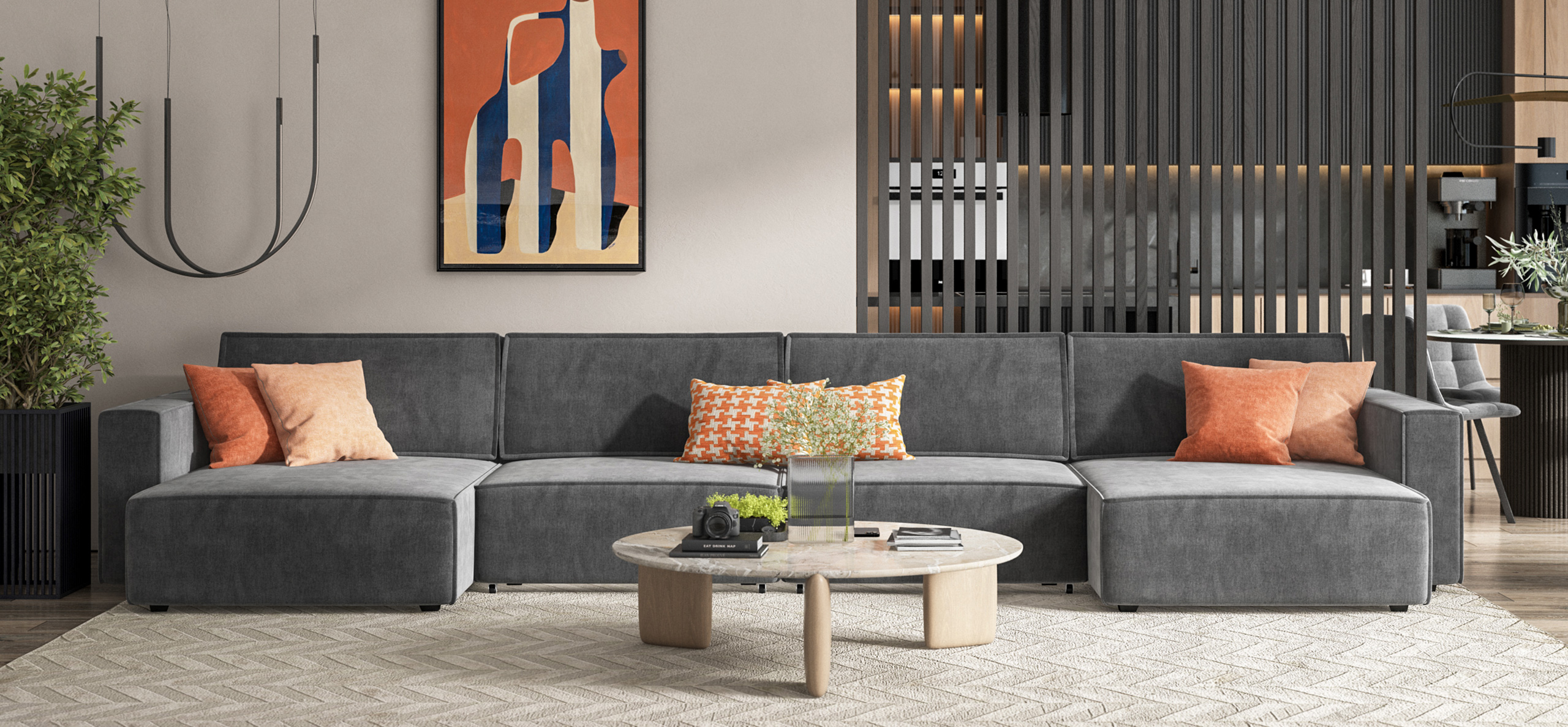 Модульная система позволит создать любую комбинацию от уютного кресла до огромного дивана для большой компании.