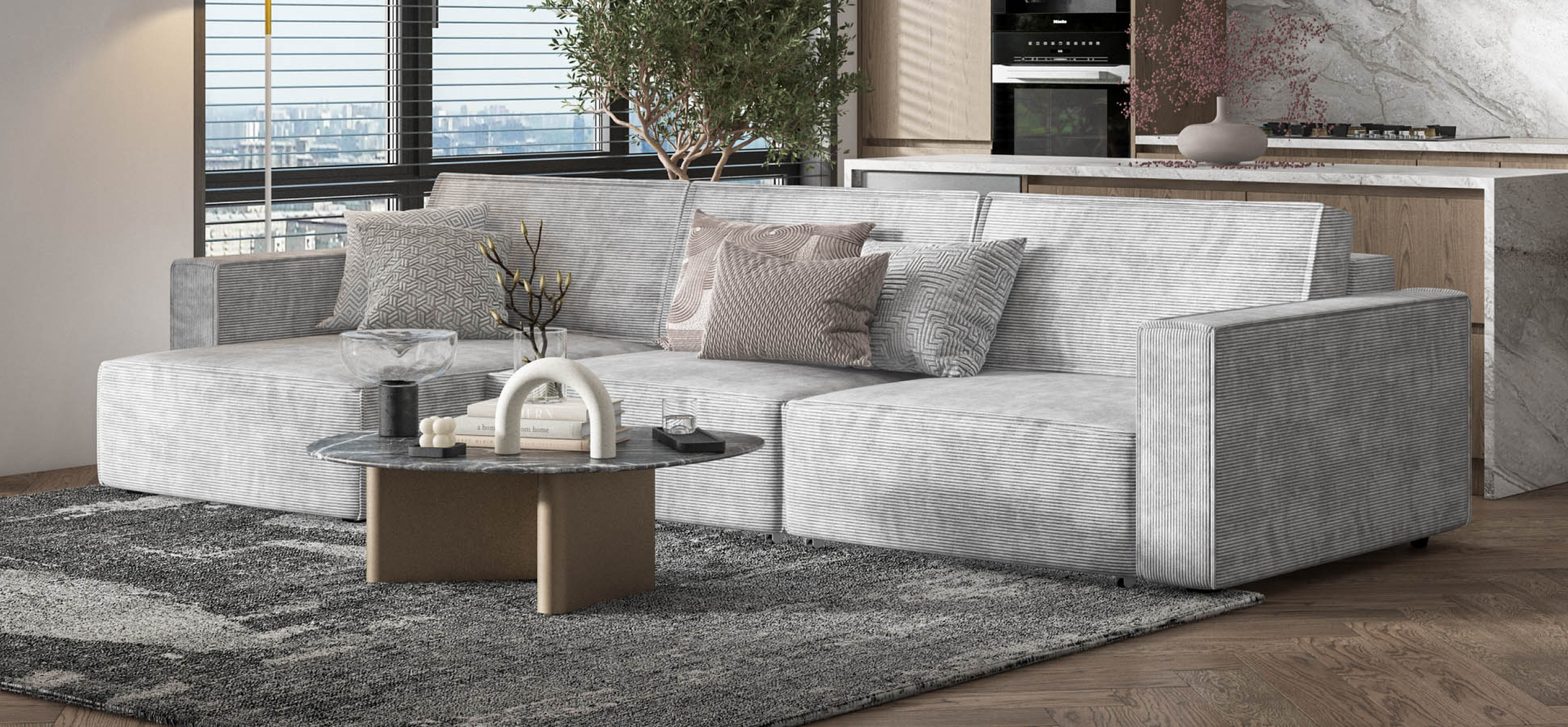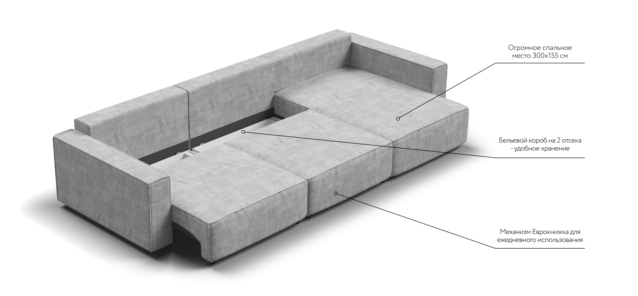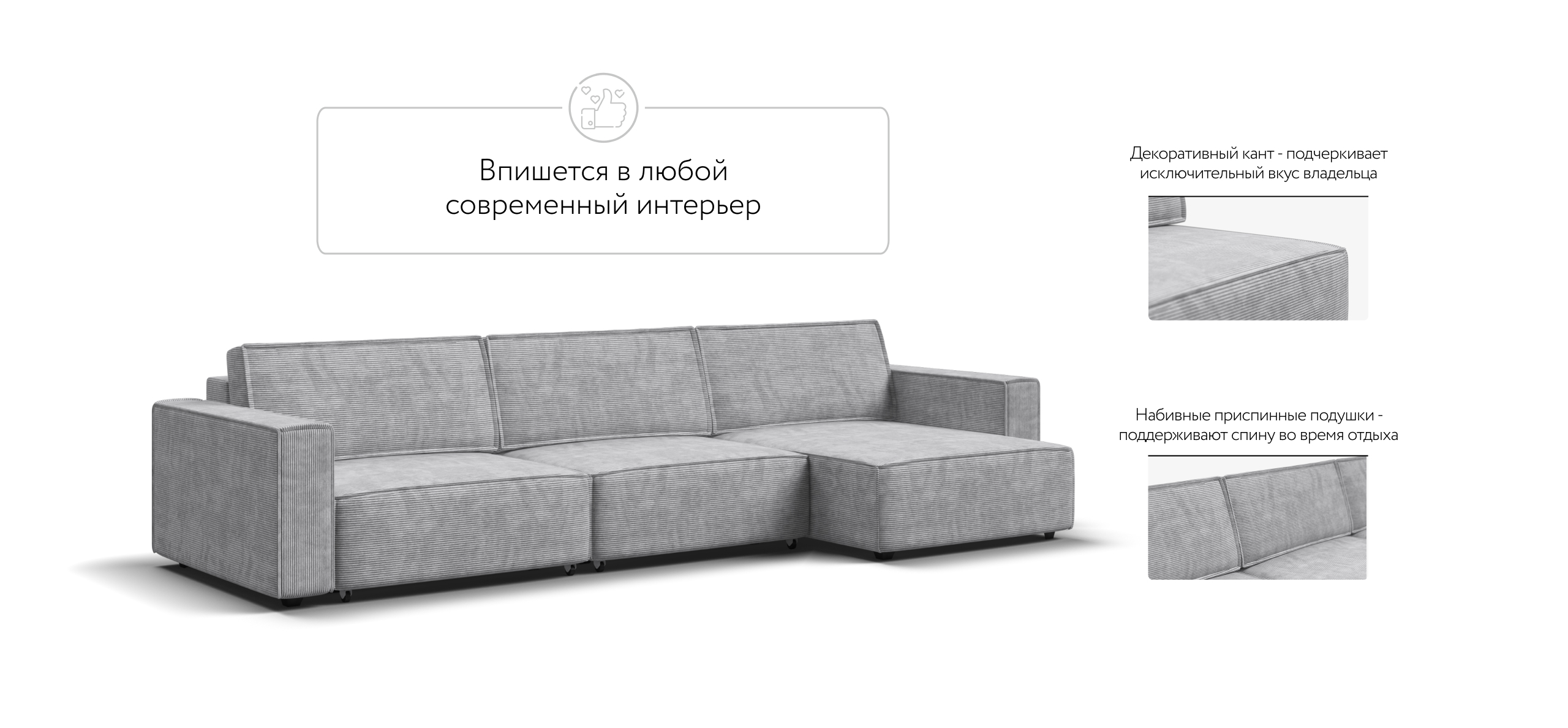 Угловой диван Босс Софт Модуль Макс Вельвет Корд серый