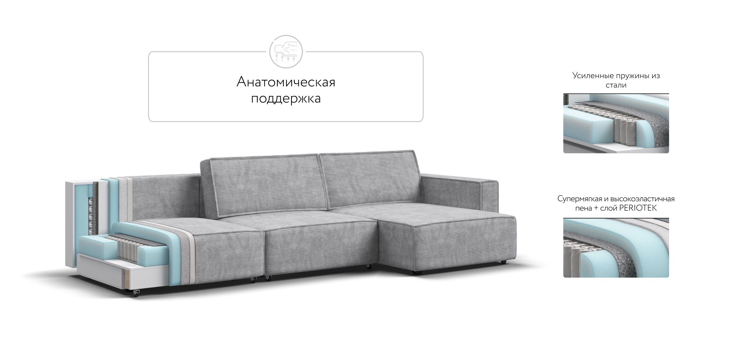 Диван Босс Софт – Модульная система в стиле лофт. Сочетание надежности, стиля и функциональности. Супер удобная глубокая посадка и высокоэластичная пена с дополнительным слоем Периотек создадут максимальный комфорт во время отдыха.