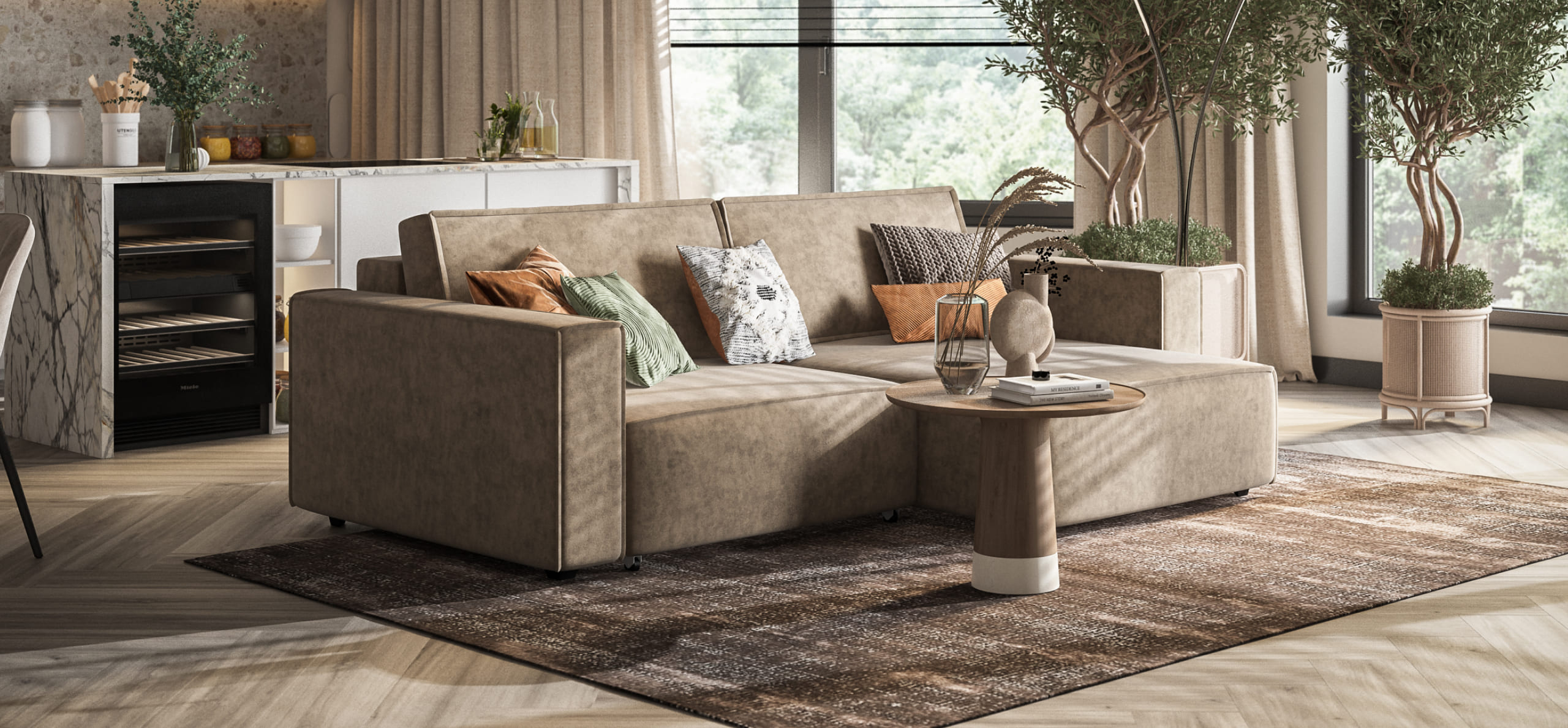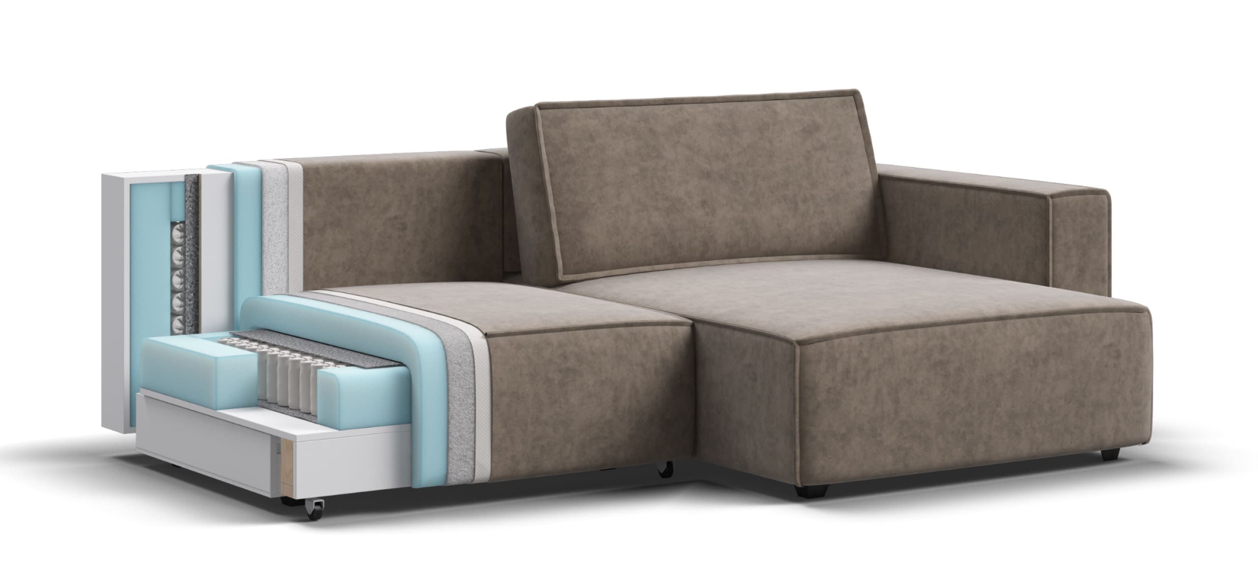 Простой и надежный механизм еврокнижка с легкостью превратит модульную систему в комфортное спальное место.