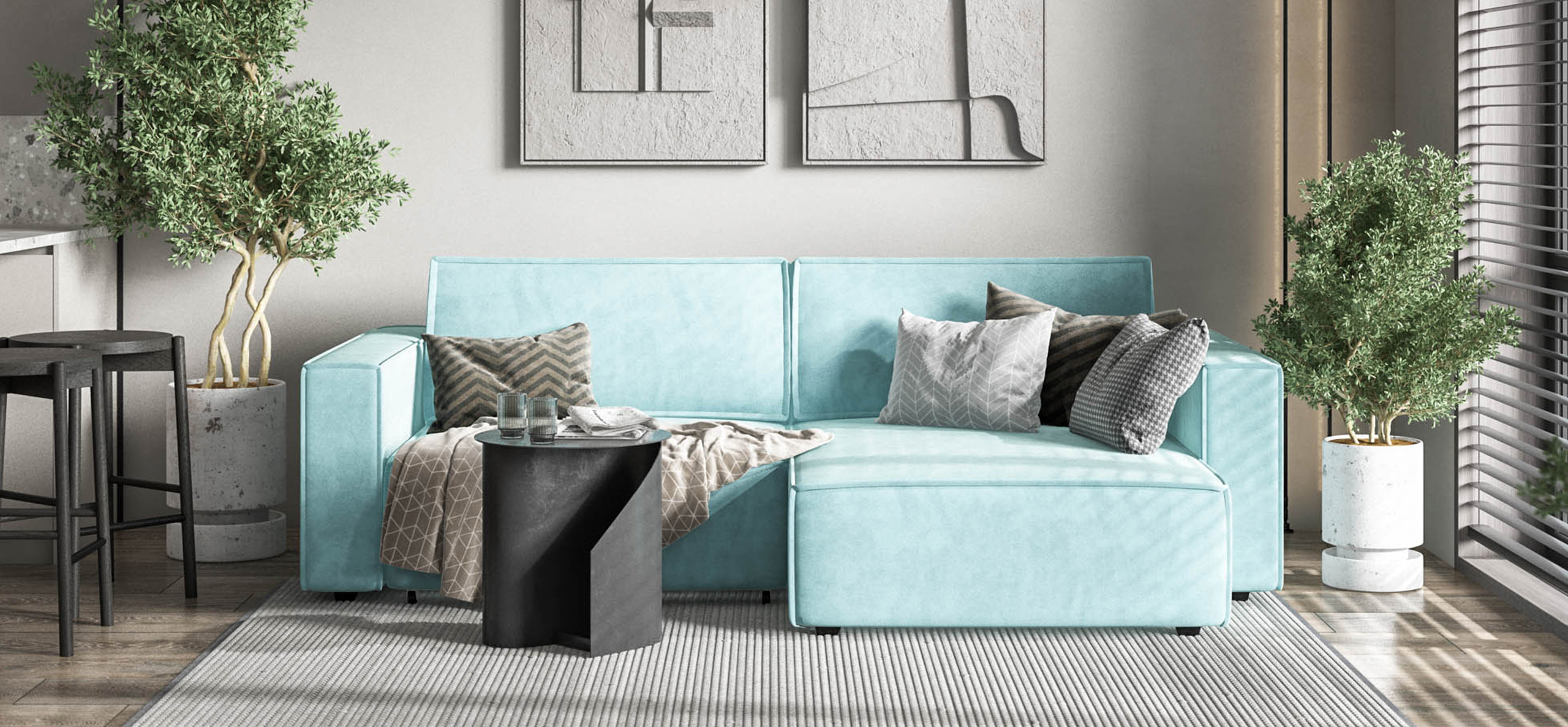 Угловой диван Босс Софт Модуль велюр Монолит аква