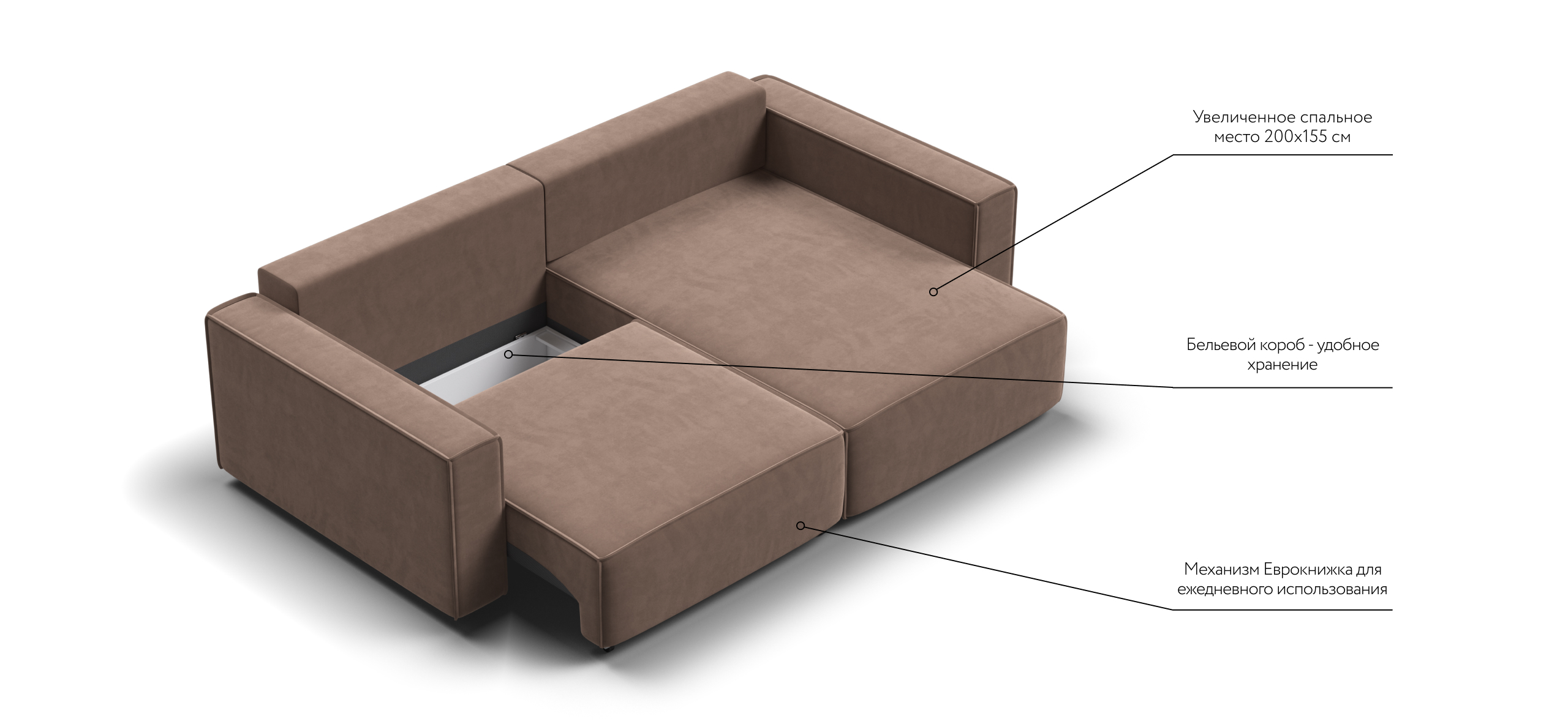 Простой и надежный механизм еврокнижка с легкостью превратит модульную систему в комфортное спальное место.