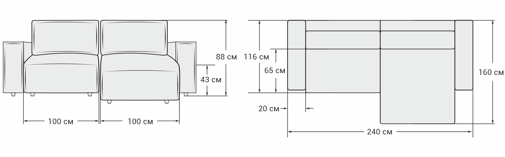 Широкие прямоугольные подлокотники, строгая симметрия и минималистичная отделка идеально дополнит современный интерьер Вашей гостиной.