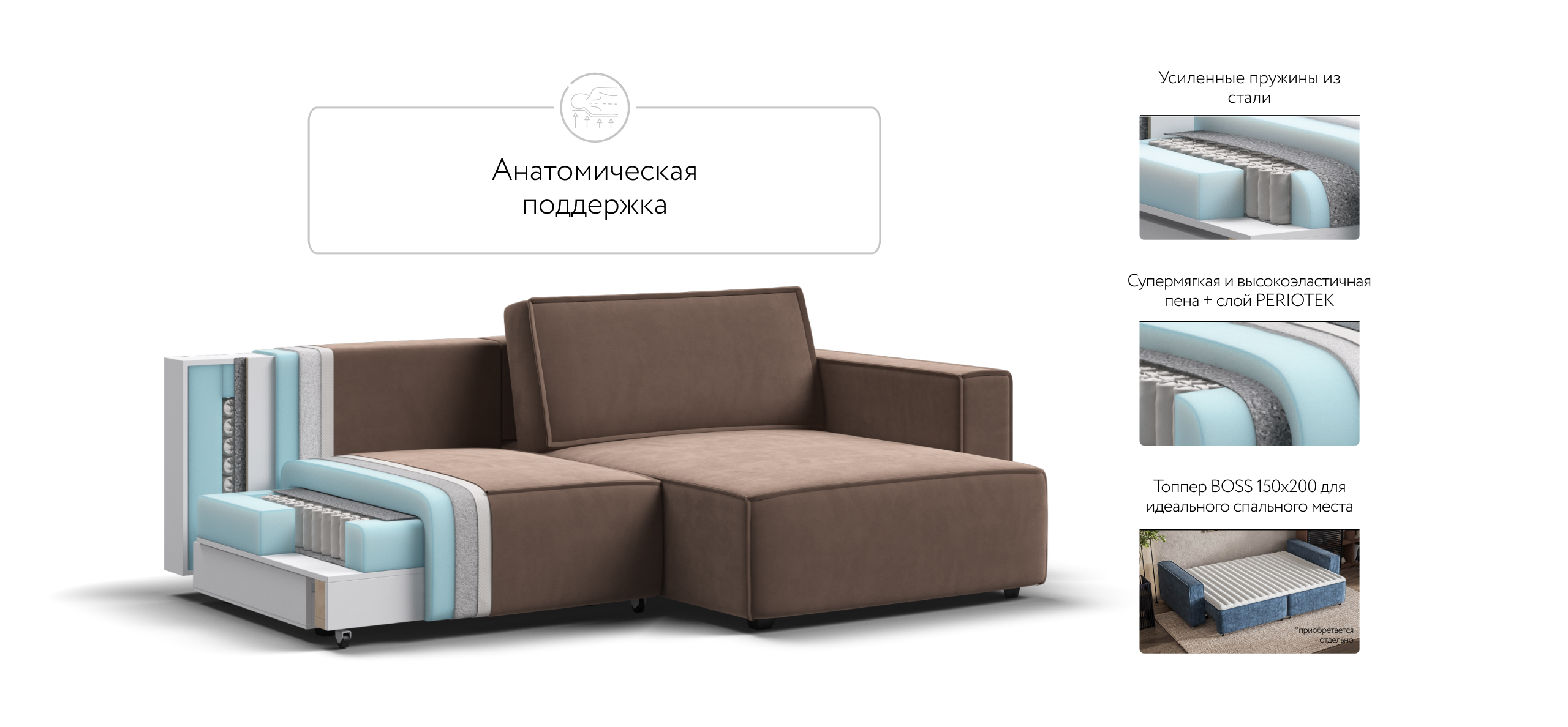 Диван Босс Софт – Модульная система в стиле лофт. Сочетание надежности, стиля и функциональности. Супер удобная глубокая посадка и высокоэластичная пена с дополнительным слоем Периотек создадут максимальный комфорт во время отдыха.