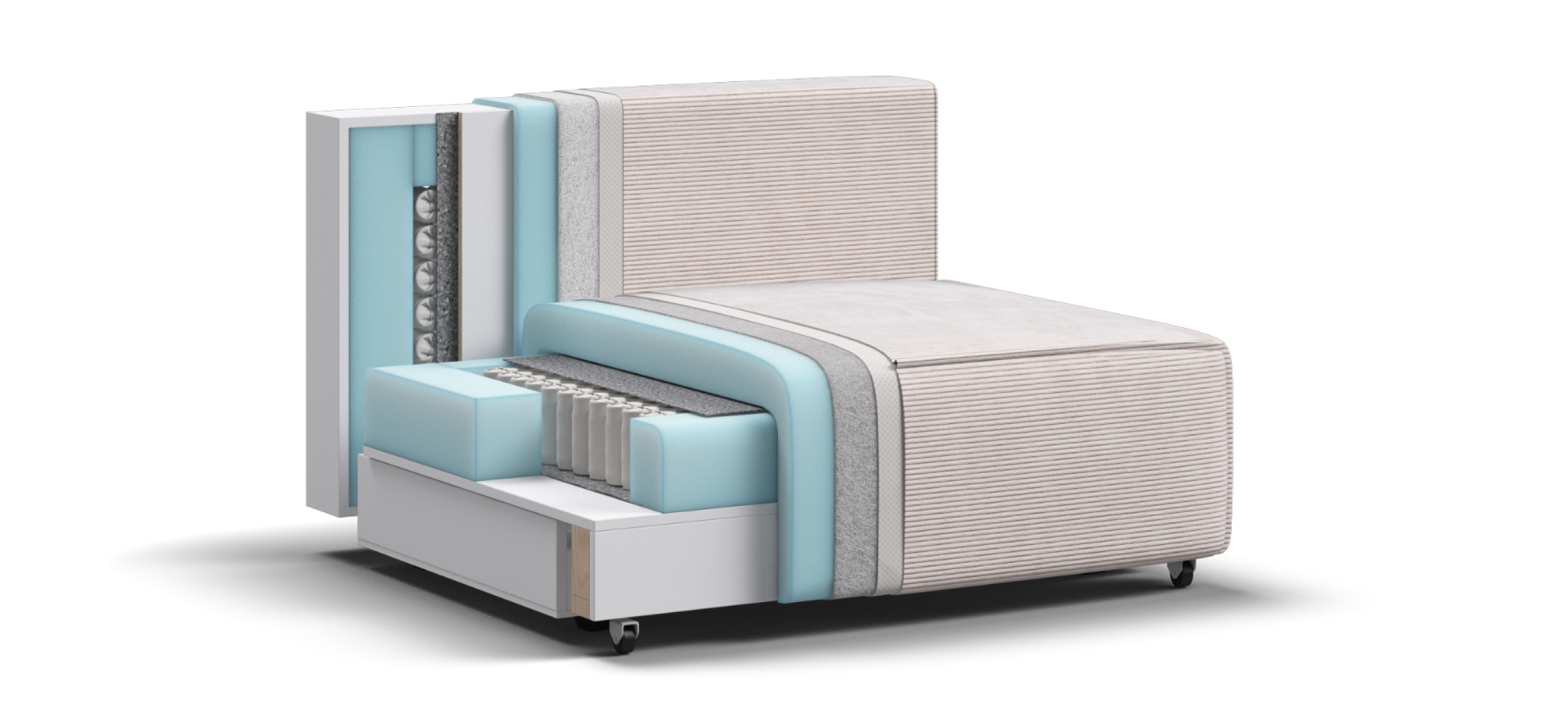 Спальное место Босс Софт Модуль является частью модульной системы. Супер удобная глубокая посадка сиденья и высокоэластичная пена с дополнительным слоем Периотек создадут максимальный комфорт во время отдыха.