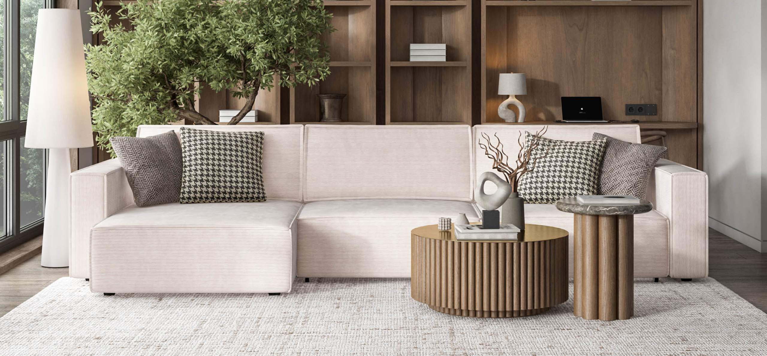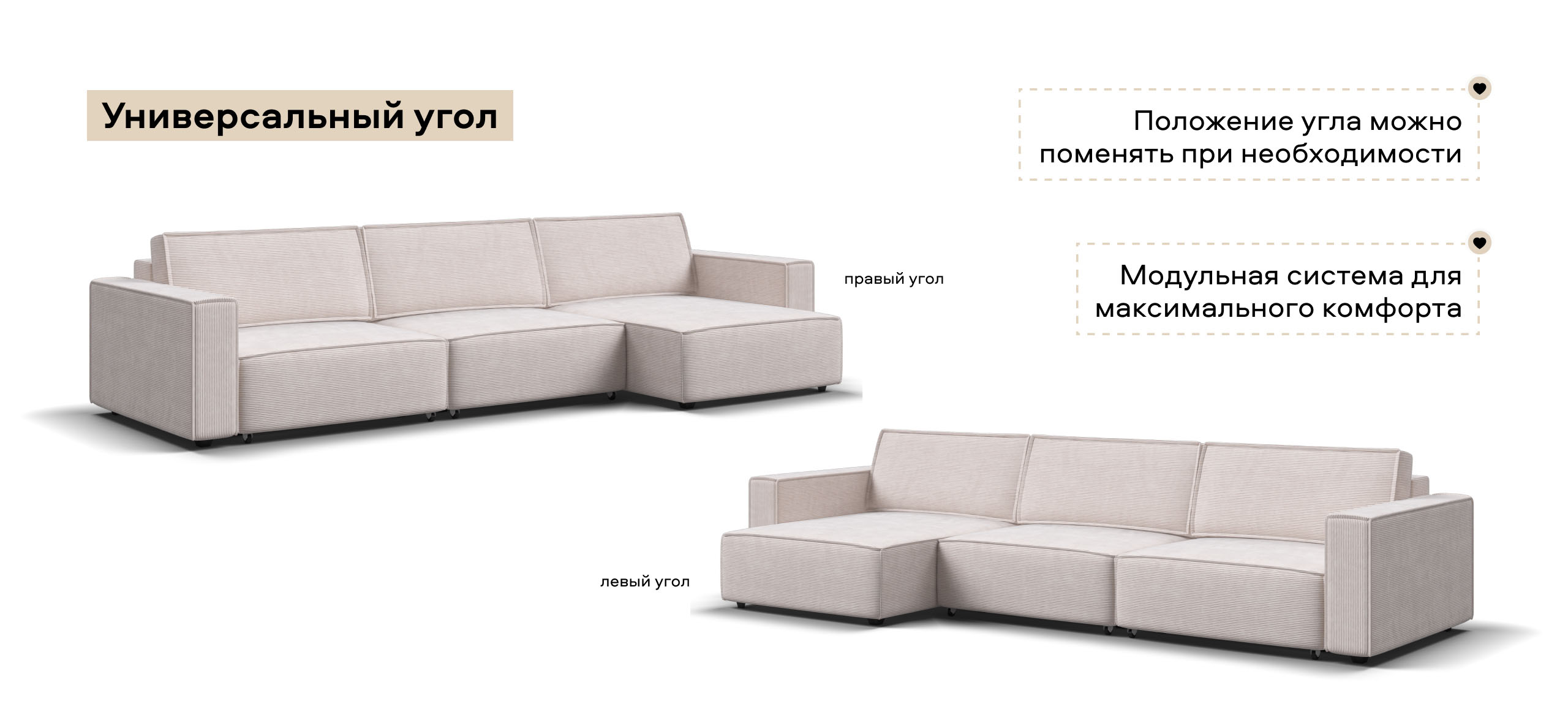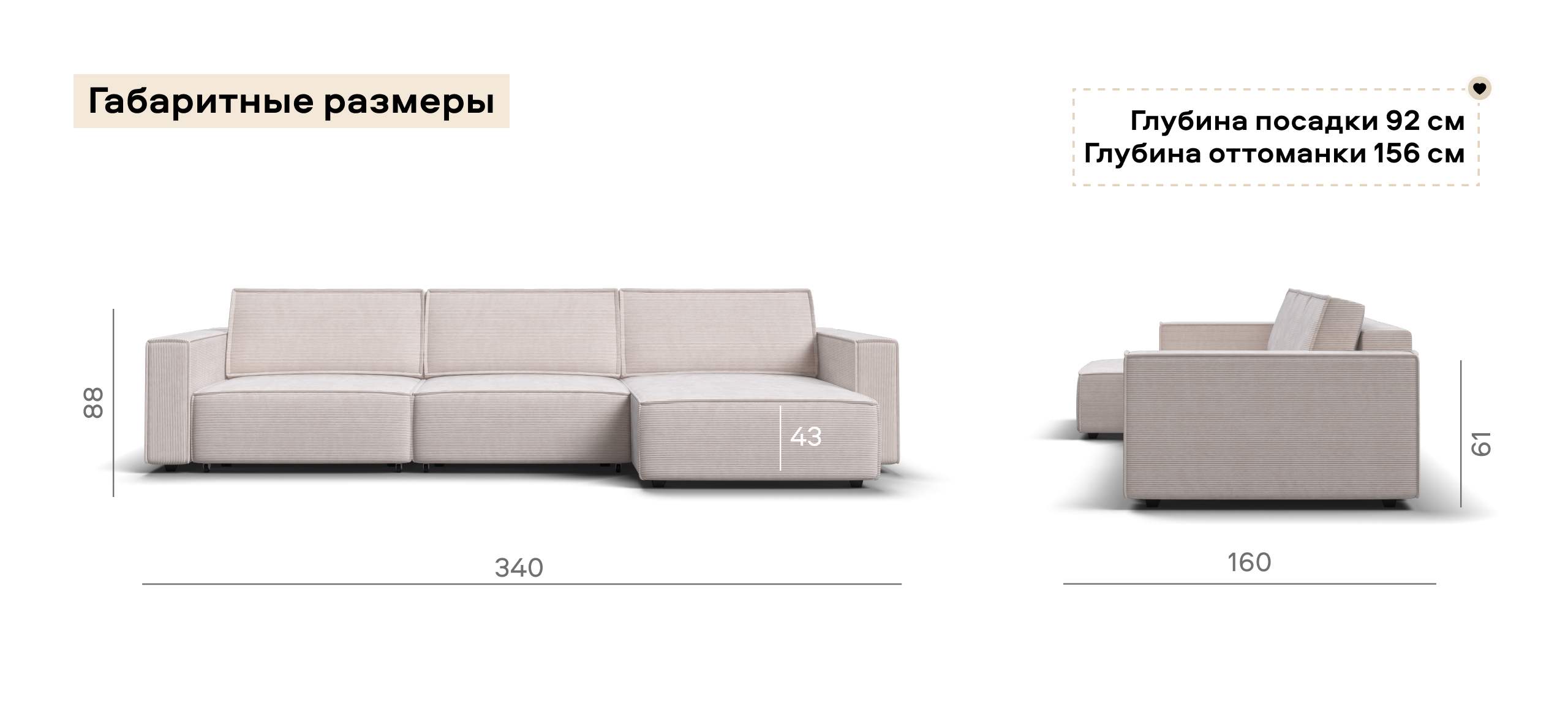 Угловой диван Босс Софт Модуль Макс Вельвет Корд бежевый