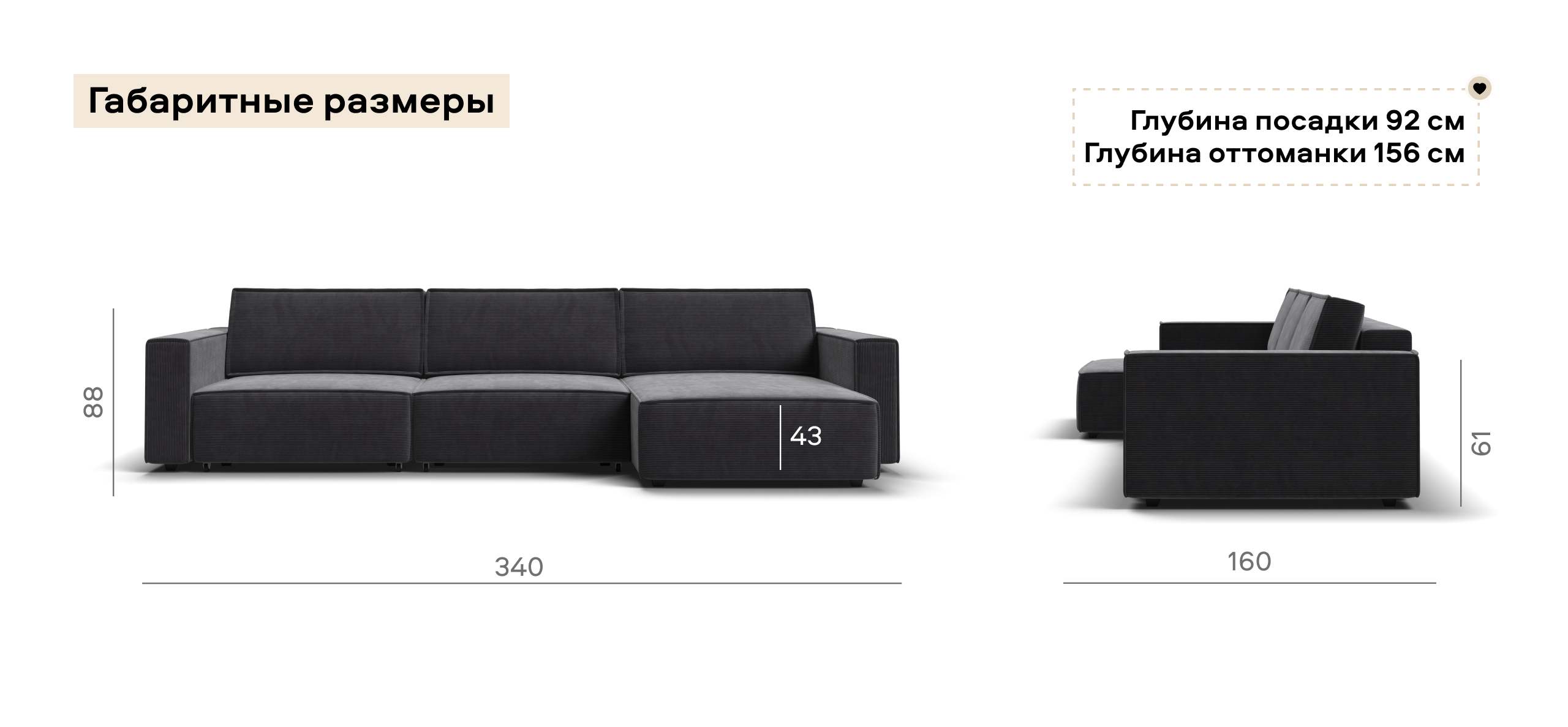 Угловой диван Босс Софт Модуль Макс Вельвет Корд графит