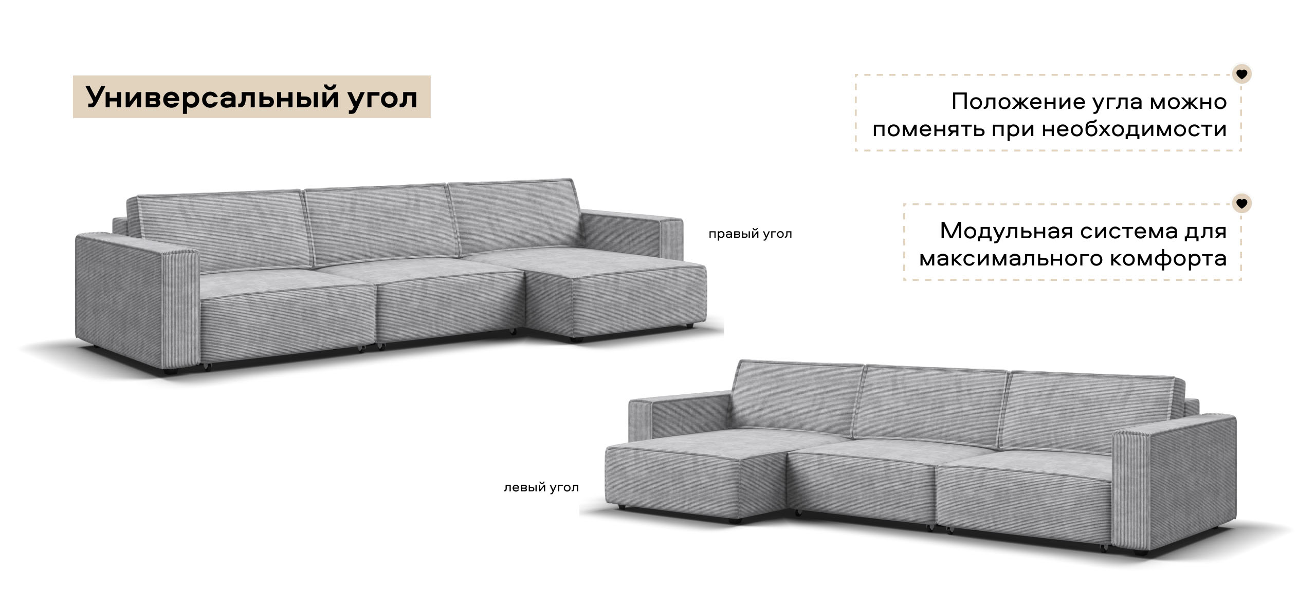 Угловой диван Босс Софт Модуль Макс Вельвет Корд серый