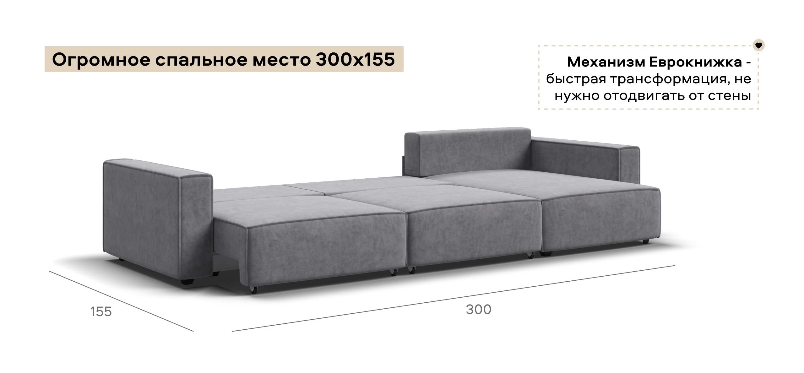 Простой и надежный механизм еврокнижка с легкостью превратит модульную систему в комфортное спальное место.