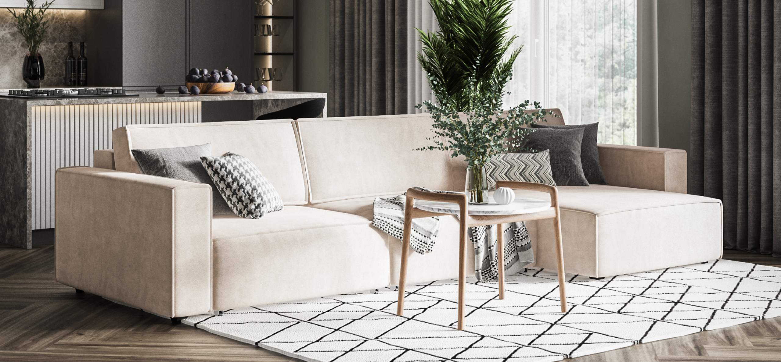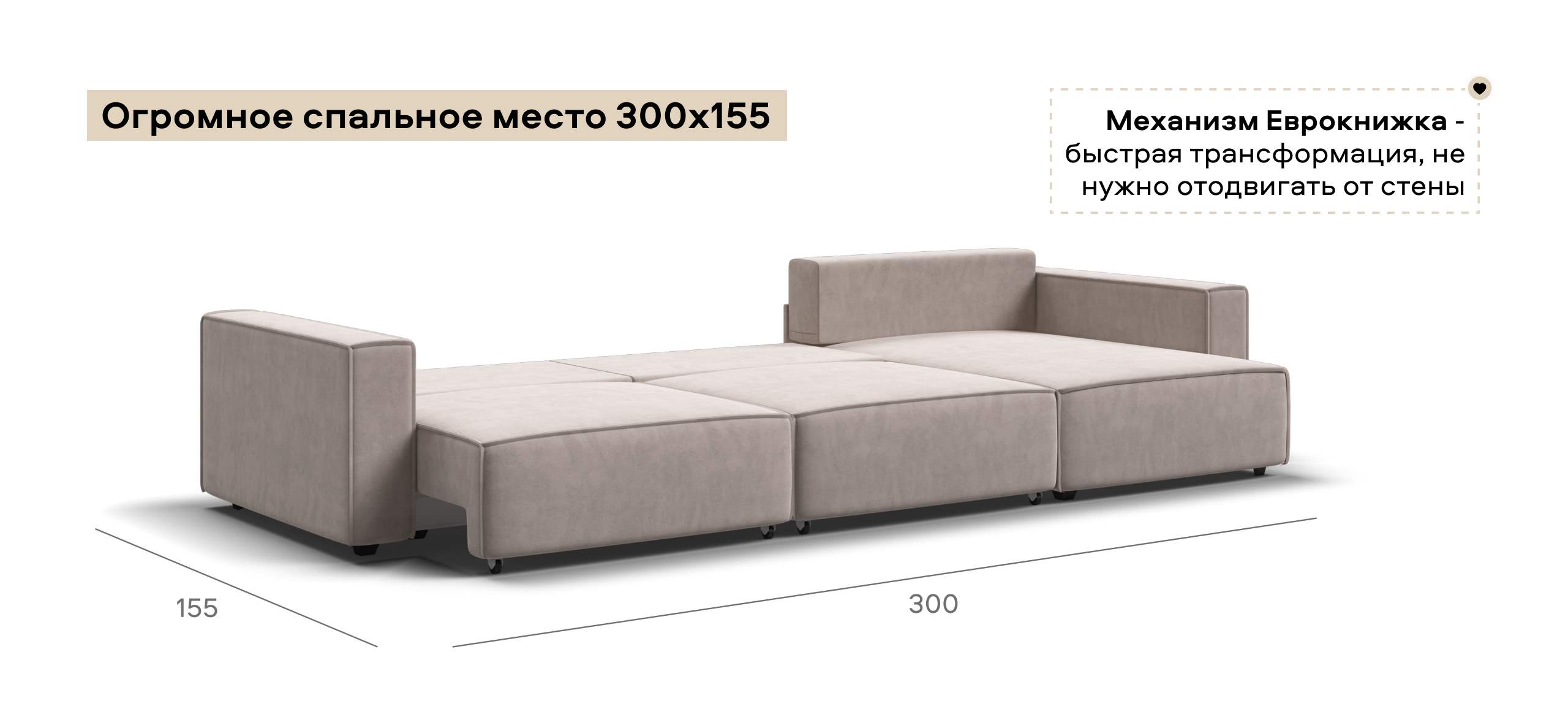 Простой и надежный механизм еврокнижка с легкостью превратит модульную систему в комфортное спальное место.