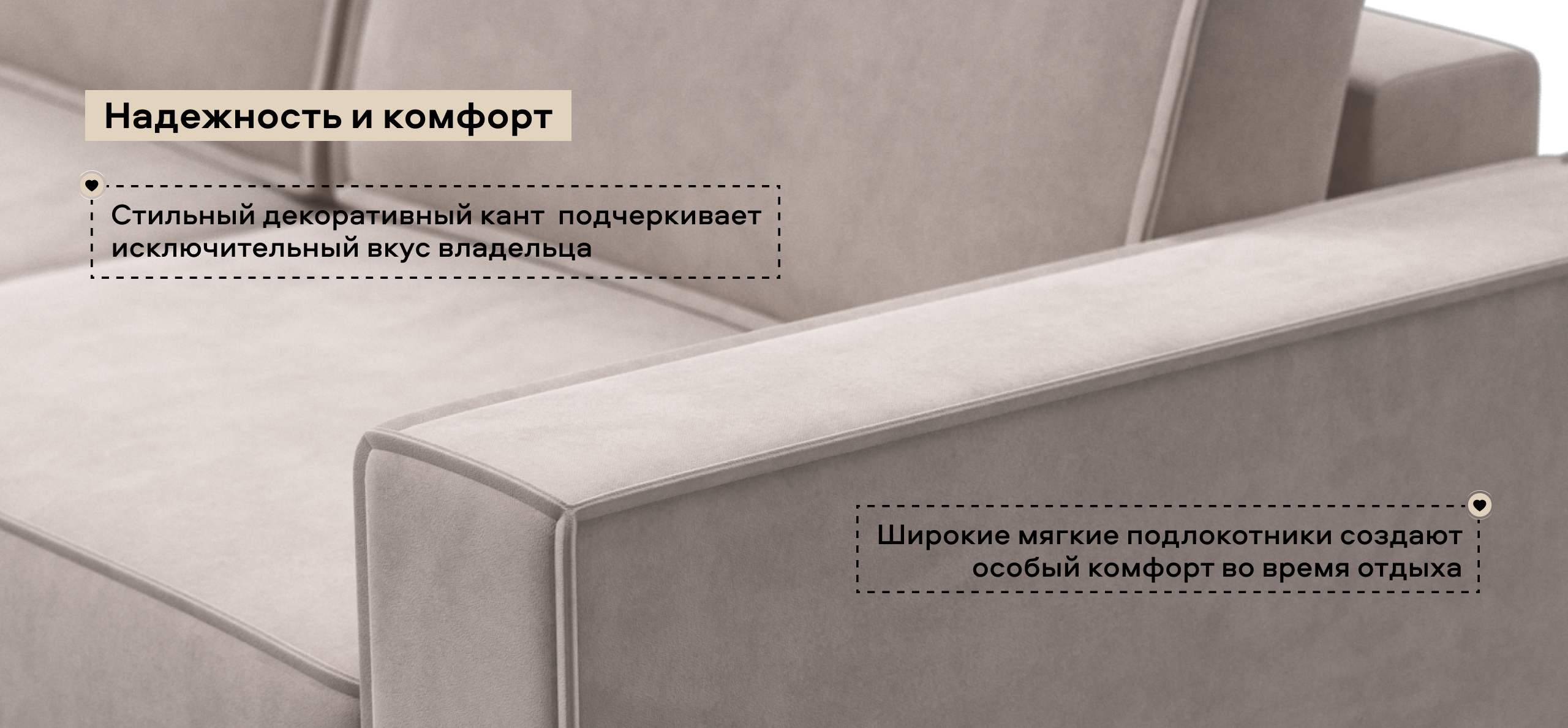 Широкие прямоугольные подлокотники, строгая симметрия и минималистичная отделка идеально дополнит современный интерьер Вашей гостиной.