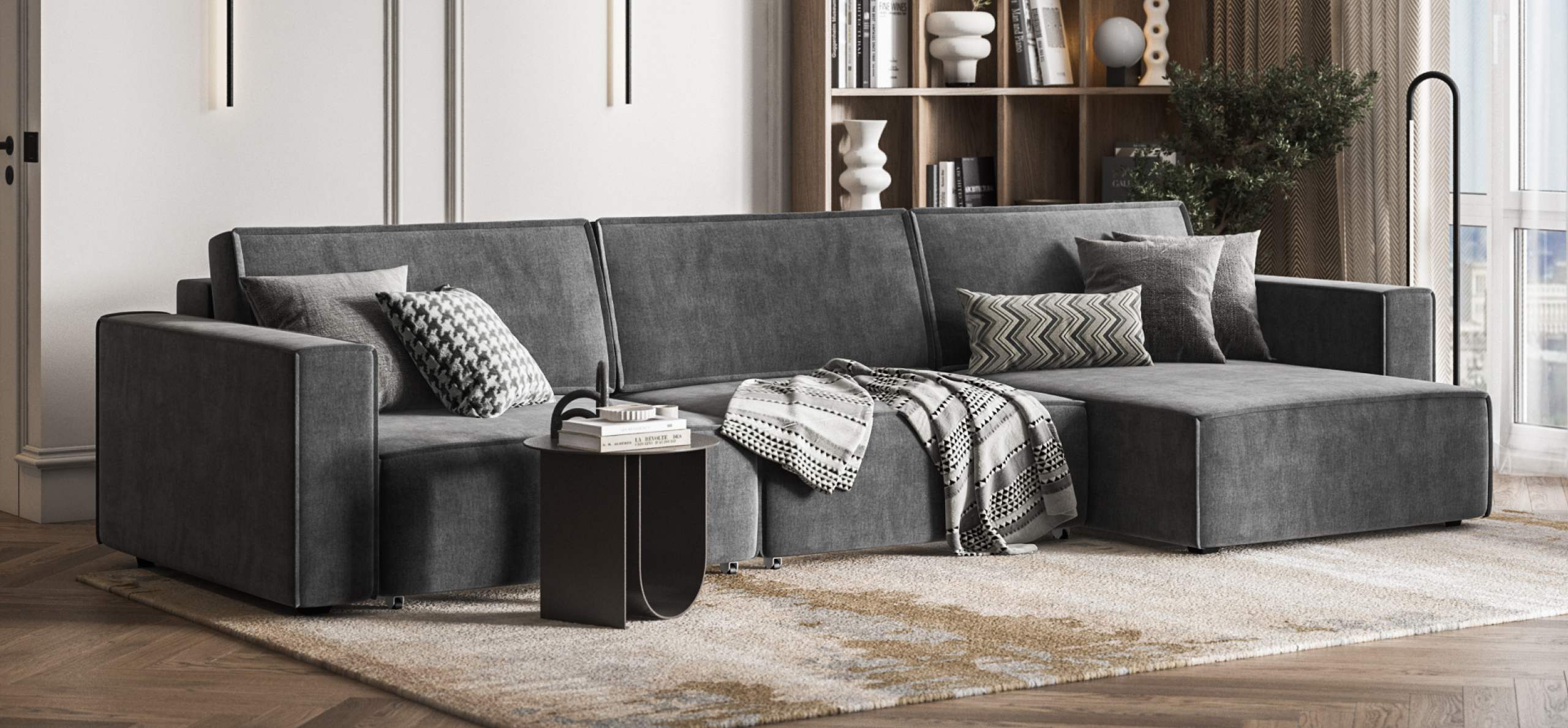 Простой и надежный механизм еврокнижка с легкостью превратит модульную систему в комфортное спальное место.