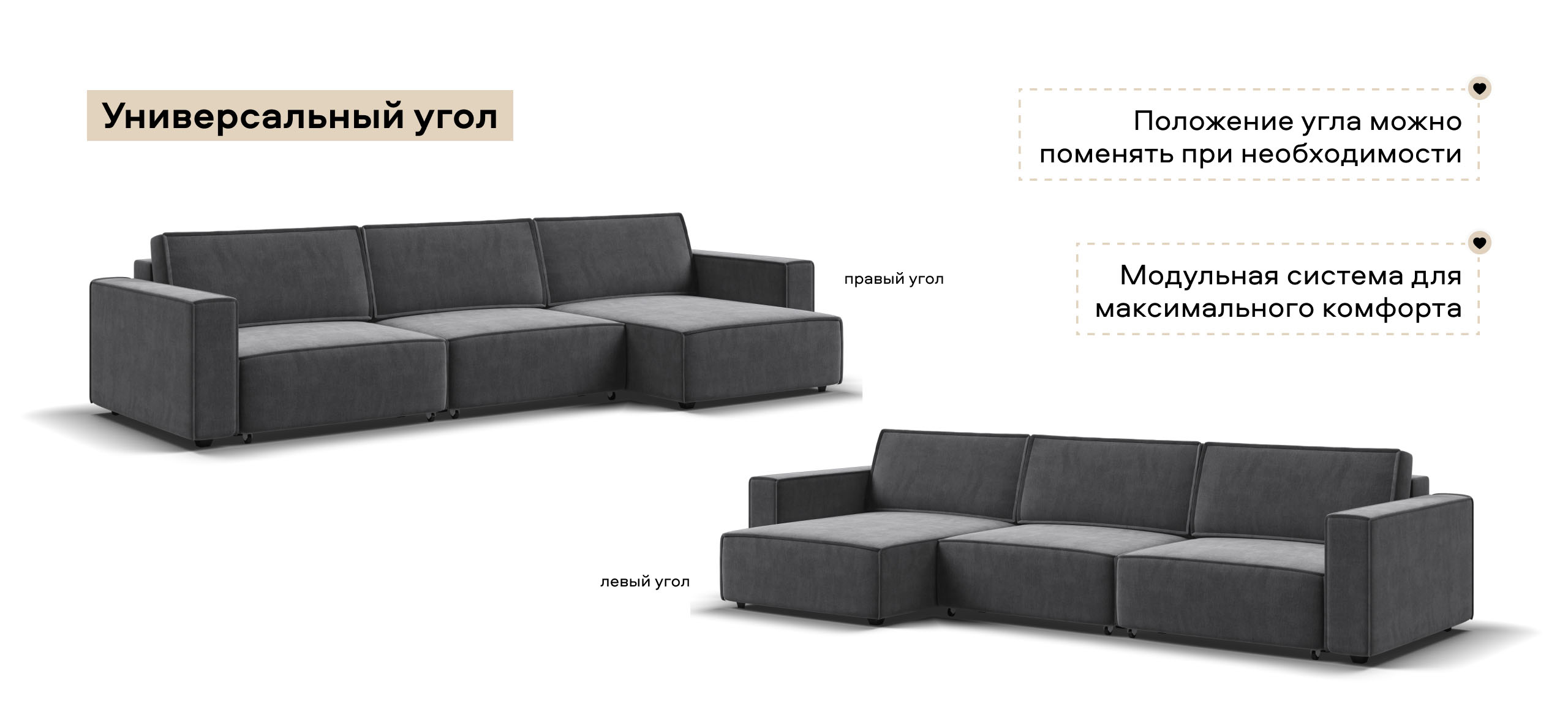 Угловой диван Босс Софт Модуль Макс велюр Монолит серый