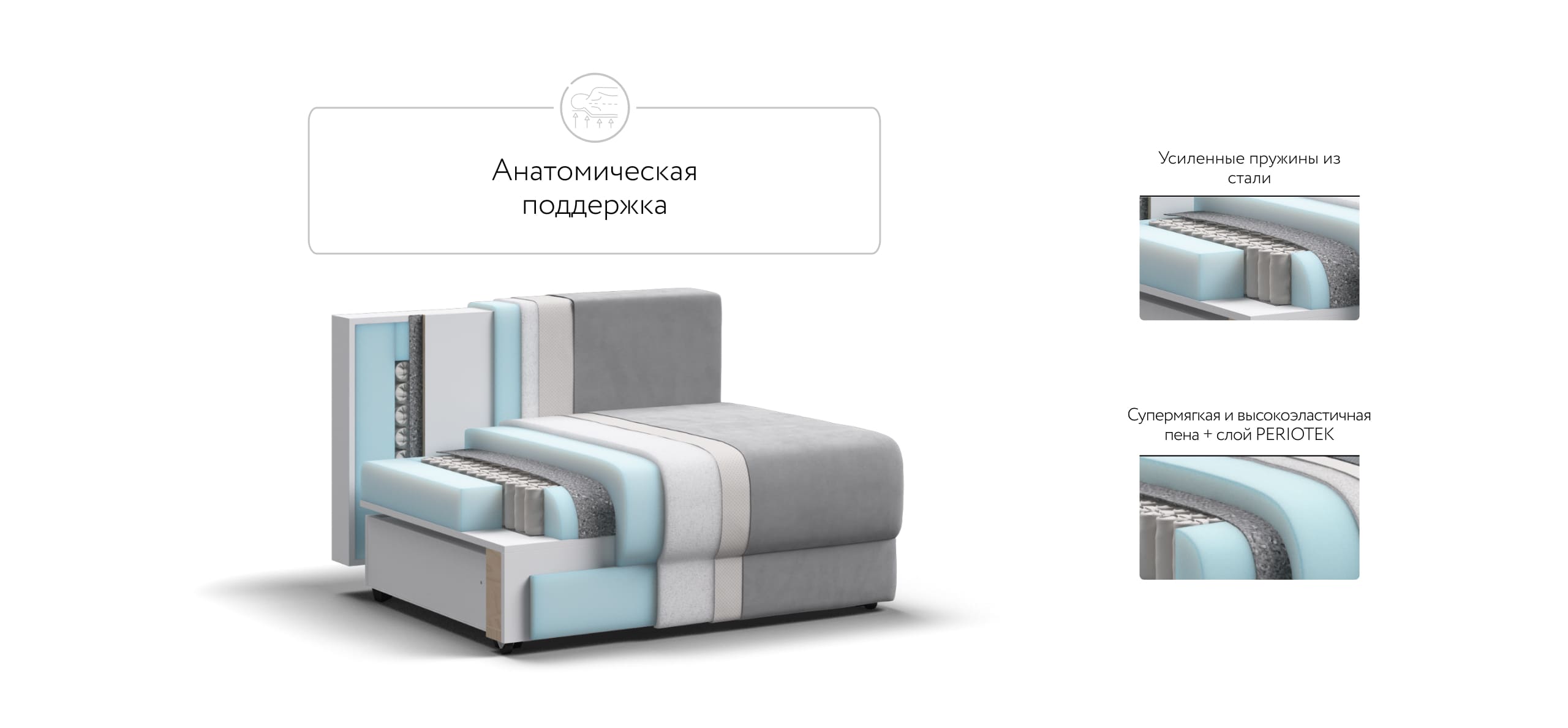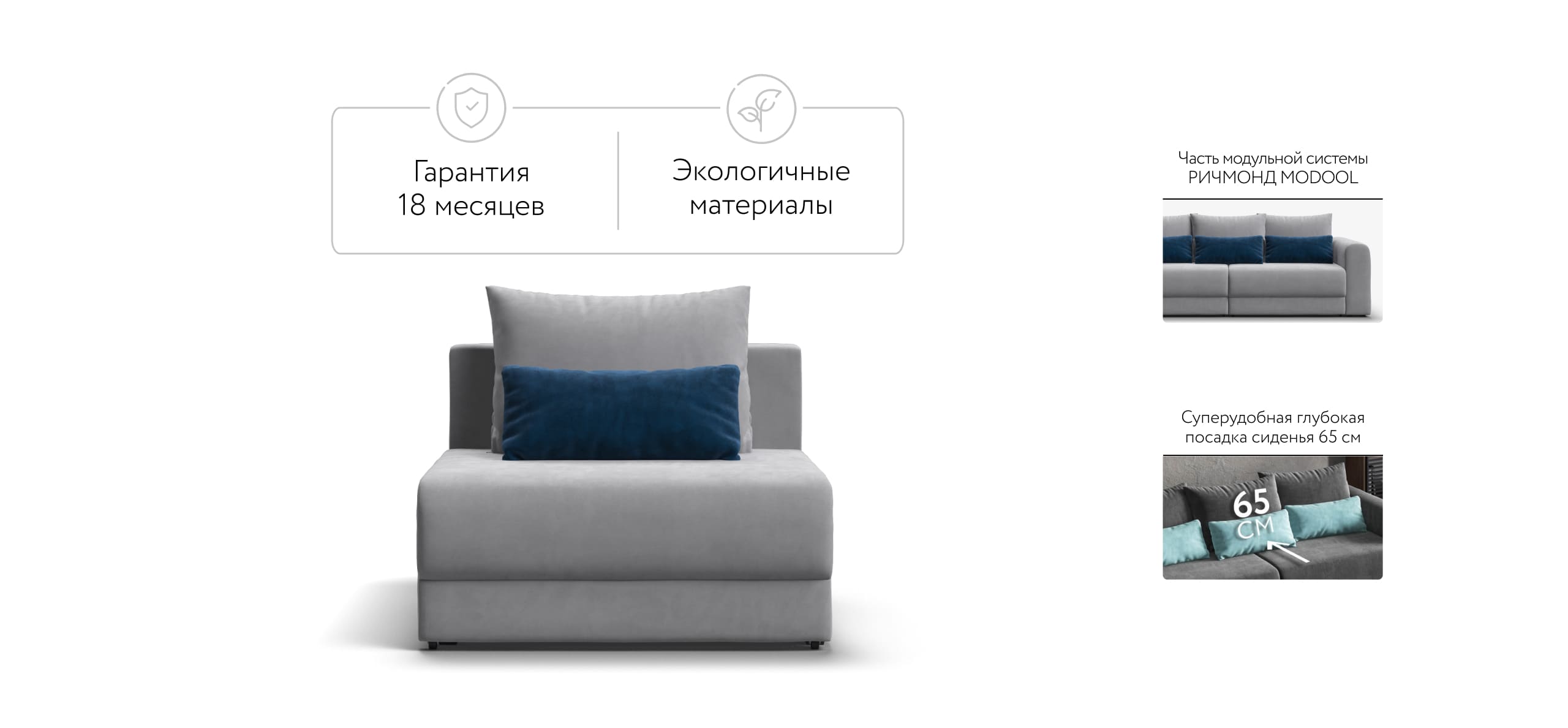 Ричмонд Модуль – Модульная система для комфортного отдыха. Суперудобная глубокая посадка и высокоэластичная пена с дополнительным слоем Периотек создадут максимальный комфорт во время отдыха.
