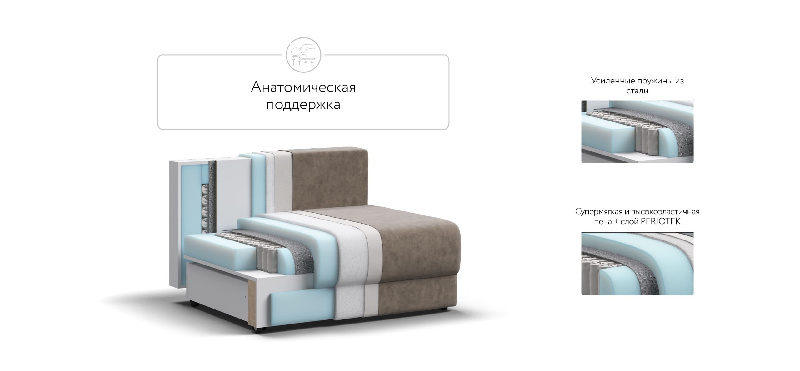 Ричмонд Модуль – Модульная система для комфортного отдыха. Суперудобная глубокая посадка и высокоэластичная пена с дополнительным слоем Периотек создадут максимальный комфорт во время отдыха.