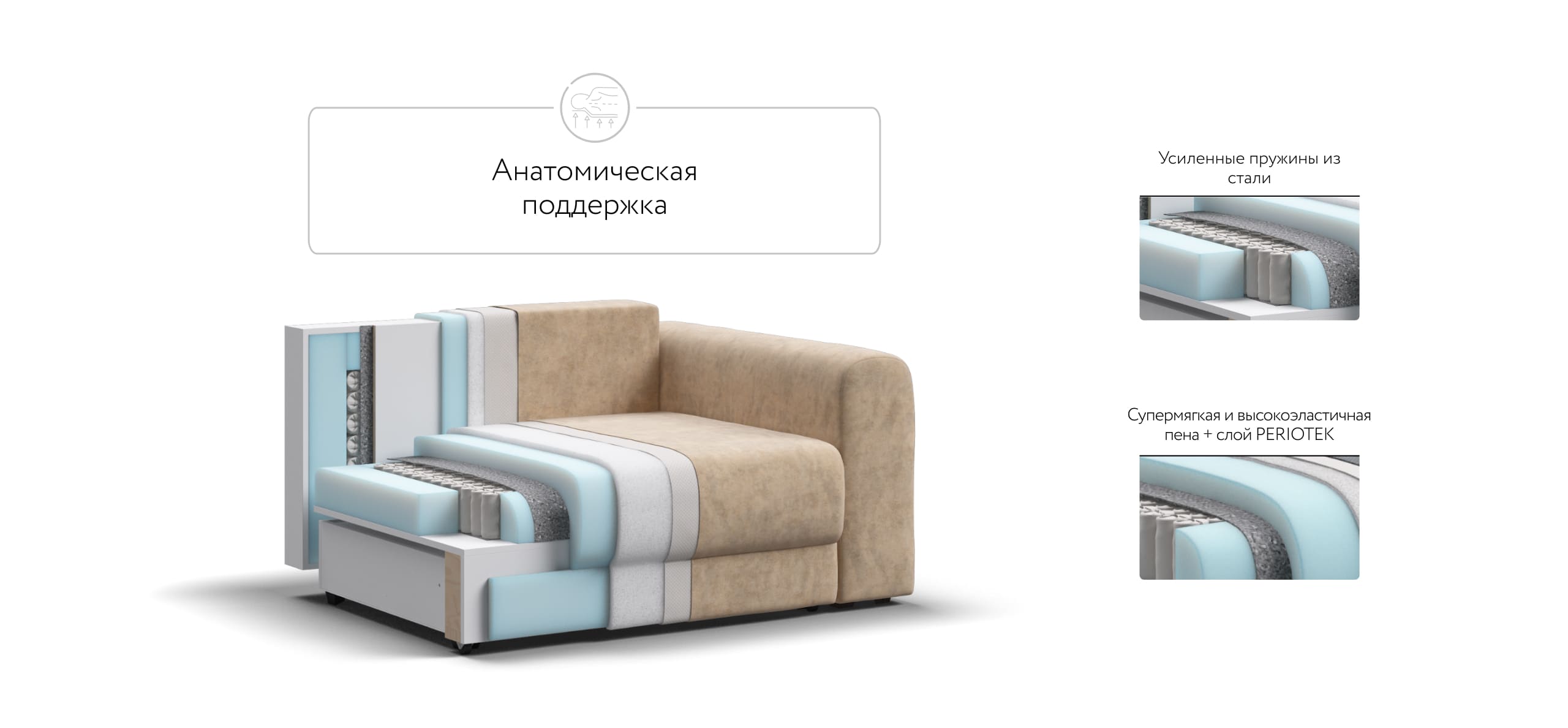 Ричмонд Модуль – Модульная система для комфортного отдыха. Суперудобная глубокая посадка и высокоэластичная пена с дополнительным слоем Периотек создадут максимальный комфорт во время отдыха.