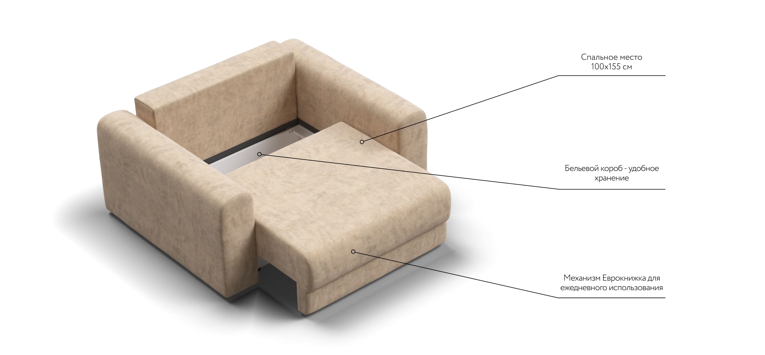Простой и надежный механизм еврокнижка с легкостью превратит модульную систему в комфортное спальное место.
