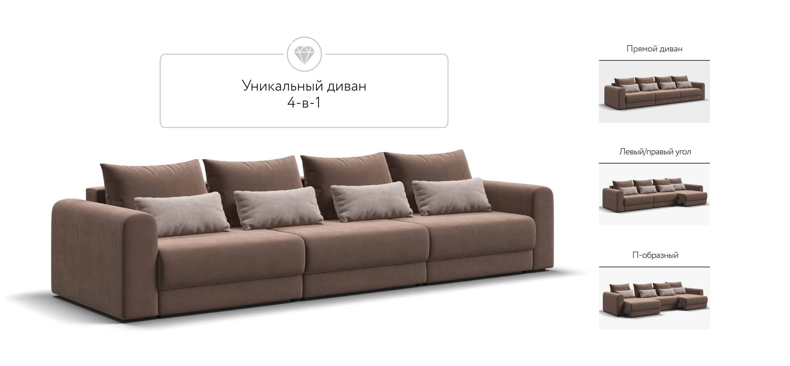 Ричмонд Модуль – Модульная система для комфортного отдыха. Суперудобная глубокая посадка и высокоэластичная пена с дополнительным слоем Периотек создадут максимальный комфорт во время отдыха.