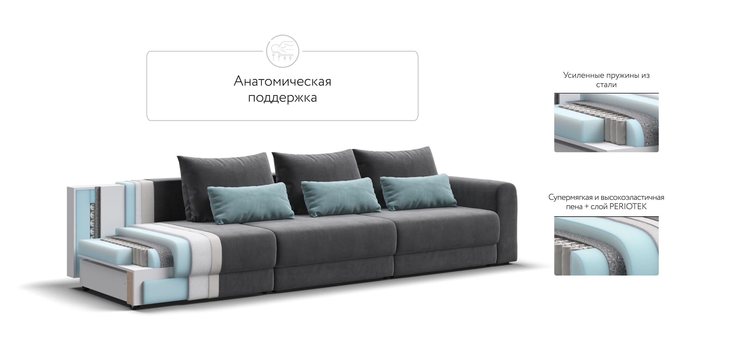 Ричмонд Модуль – Модульная система для комфортного отдыха. Суперудобная глубокая посадка и высокоэластичная пена с дополнительным слоем Периотек создадут максимальный комфорт во время отдыха.