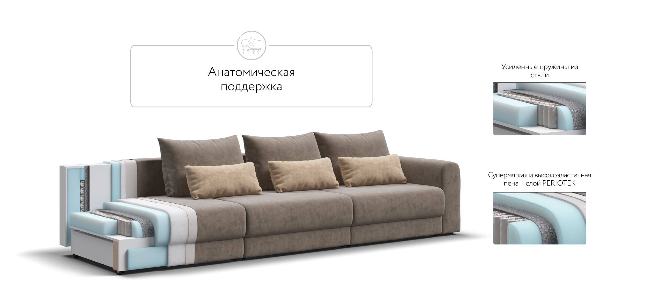 Ричмонд Модуль – Модульная система для комфортного отдыха. Суперудобная глубокая посадка и высокоэластичная пена с дополнительным слоем Периотек создадут максимальный комфорт во время отдыха.