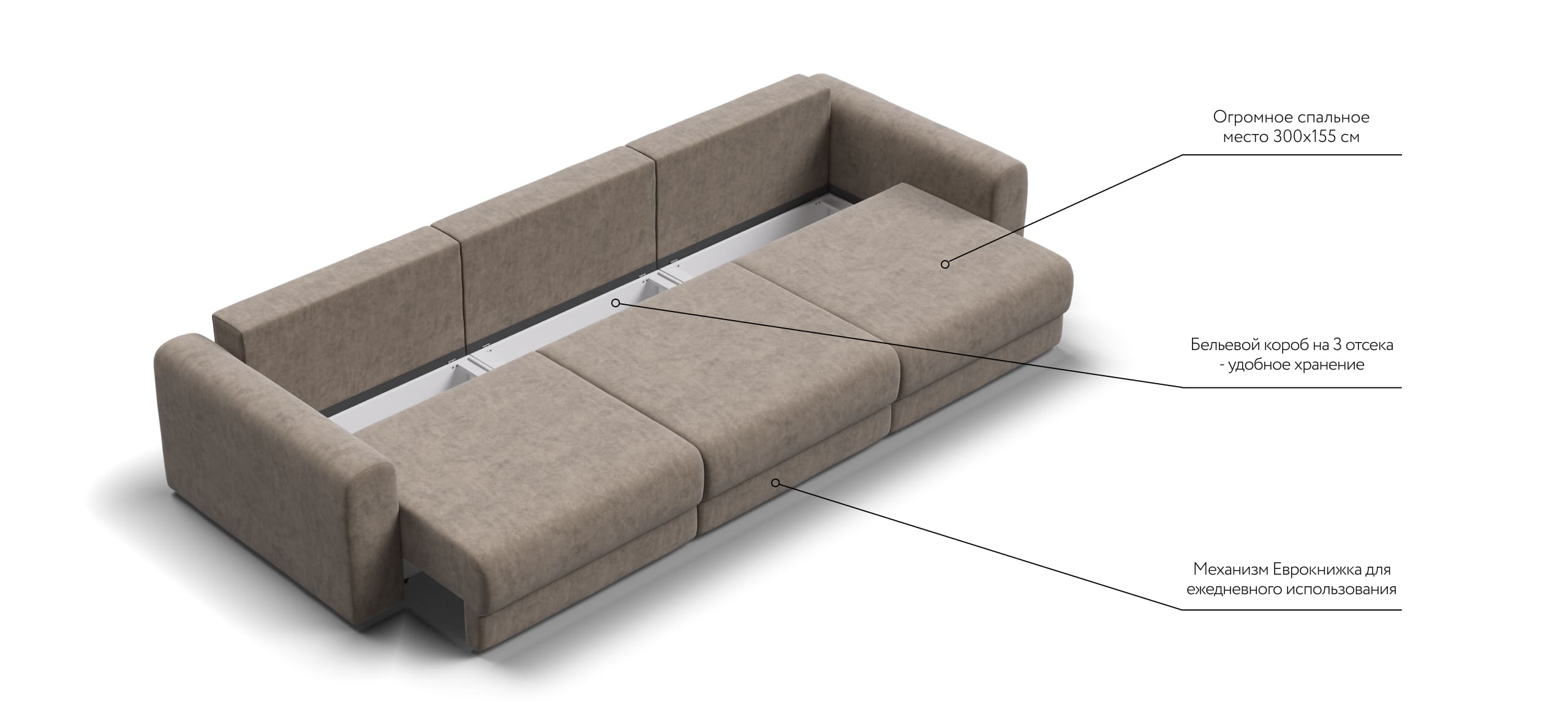 Простой и надежный механизм еврокнижка с легкостью превратит модульную систему в комфортное спальное место.
