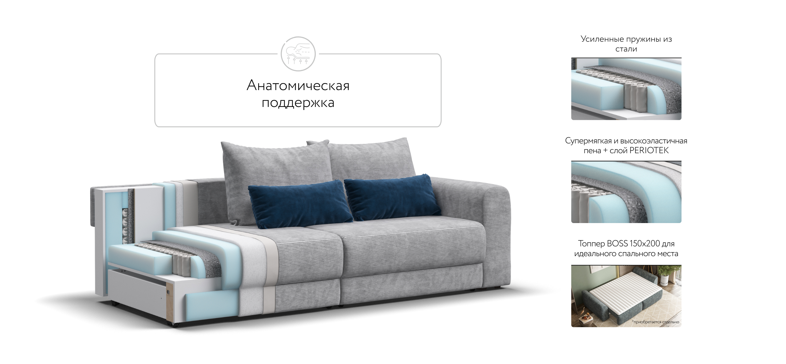 Ричмонд Модуль – Модульная система для комфортного отдыха. Суперудобная глубокая посадка и высокоэластичная пена с дополнительным слоем Периотек создадут максимальный комфорт во время отдыха.