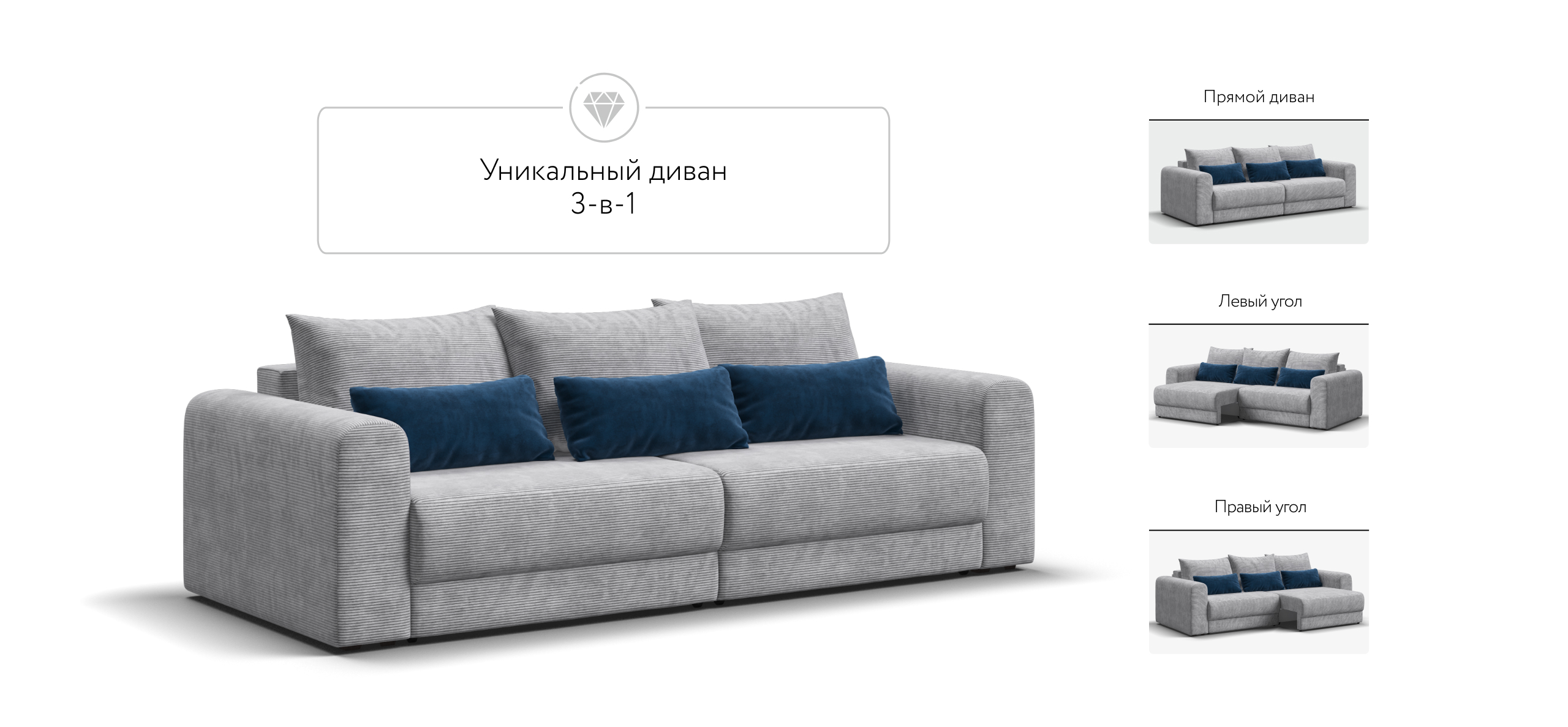 Модульный диван Ричмонд Модуль Вельвет Корд серый
