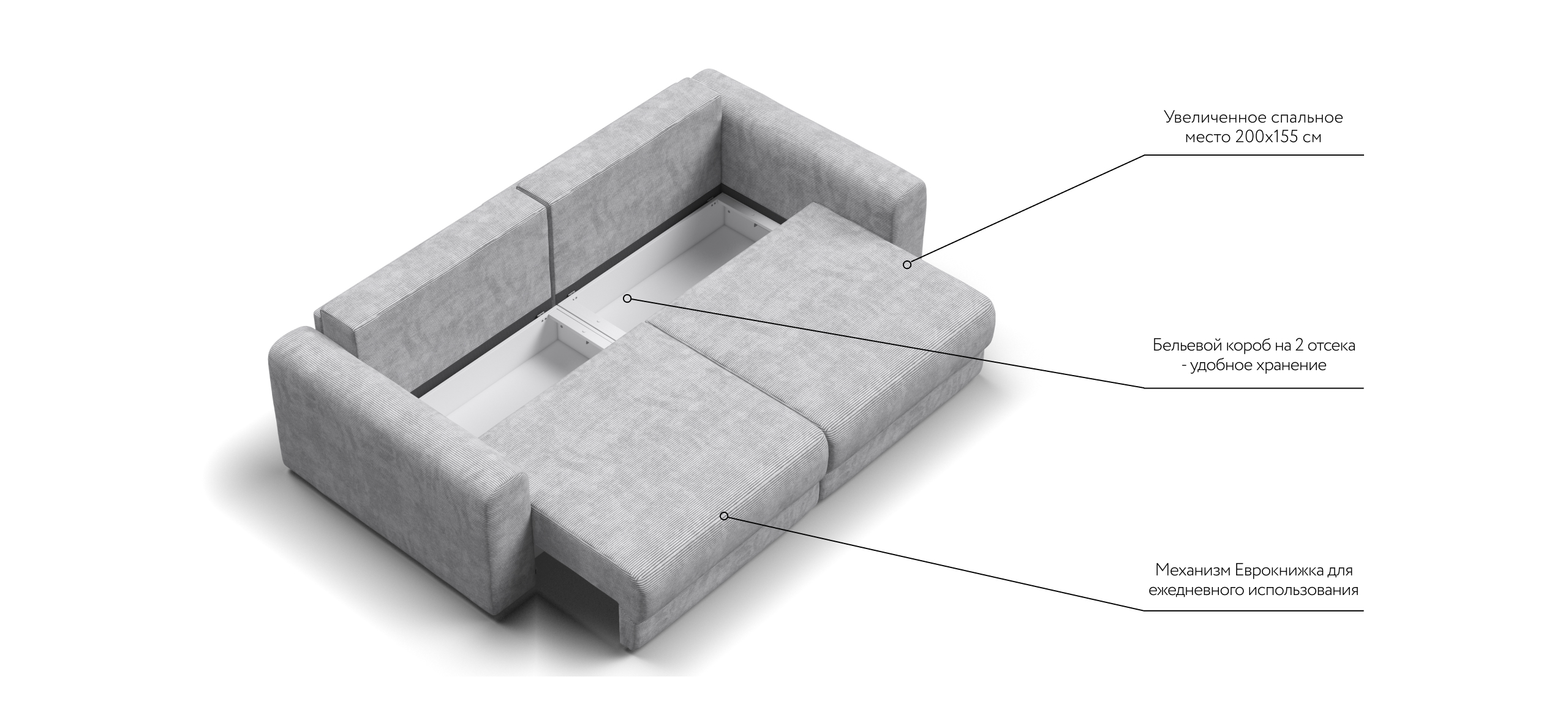 Простой и надежный механизм еврокнижка с легкостью превратит модульную систему в комфортное спальное место.