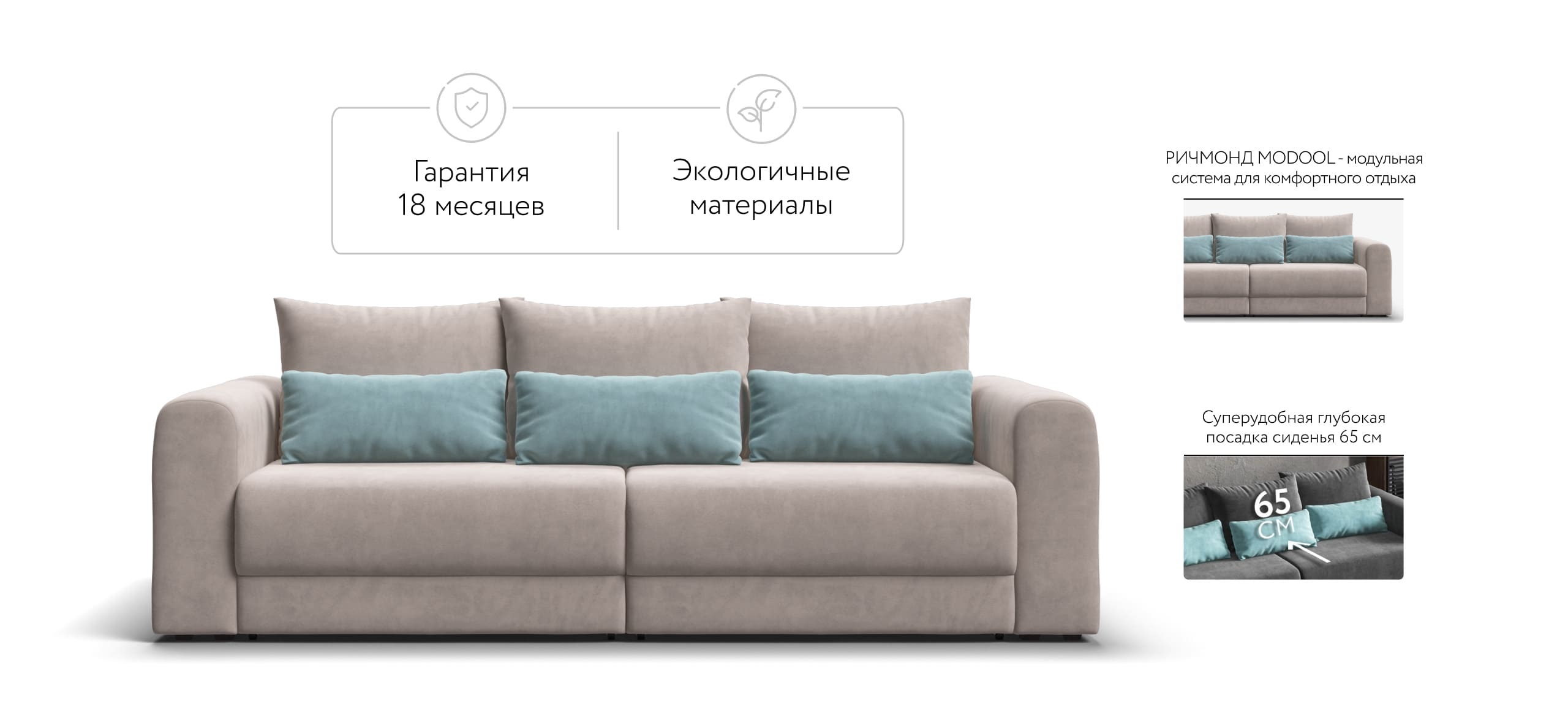 Ричмонд Модуль – Модульная система для комфортного отдыха. Суперудобная глубокая посадка и высокоэластичная пена с дополнительным слоем Периотек создадут максимальный комфорт во время отдыха.