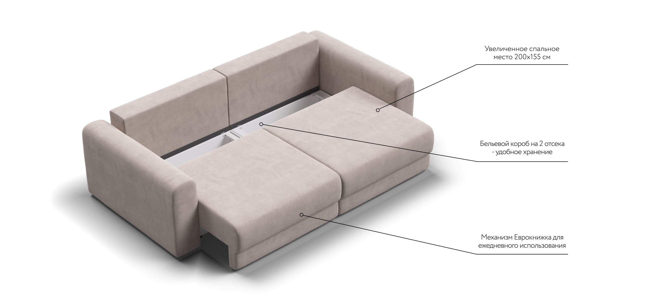 Простой и надежный механизм еврокнижка с легкостью превратит модульную систему в комфортное спальное место.