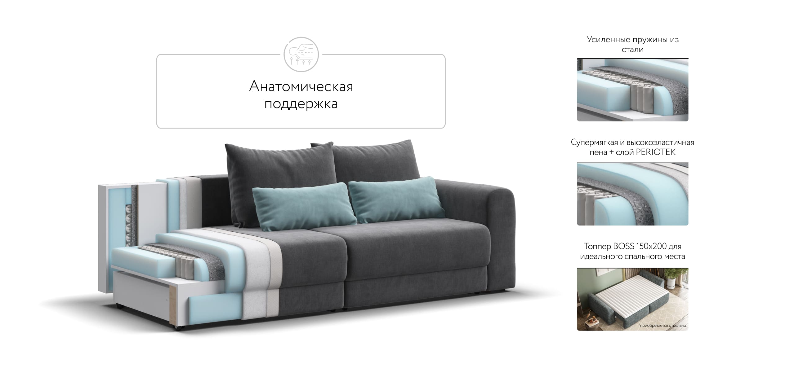 Ричмонд Модуль – Модульная система для комфортного отдыха. Суперудобная глубокая посадка и высокоэластичная пена с дополнительным слоем Периотек создадут максимальный комфорт во время отдыха.