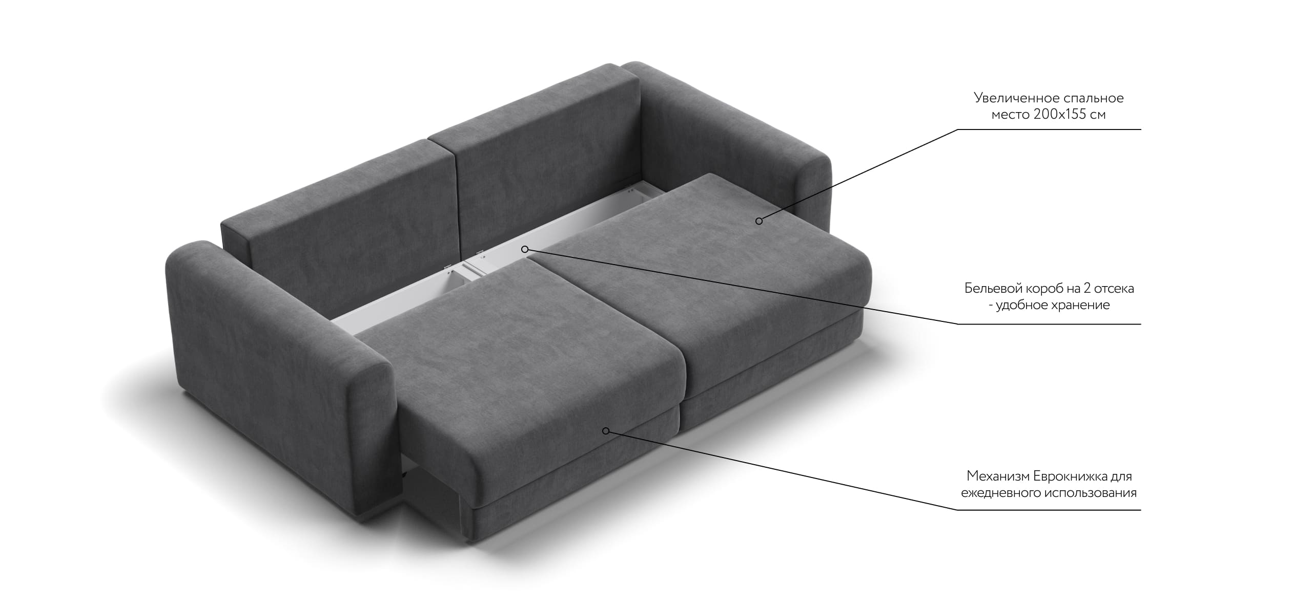 Простой и надежный механизм еврокнижка с легкостью превратит модульную систему в комфортное спальное место.