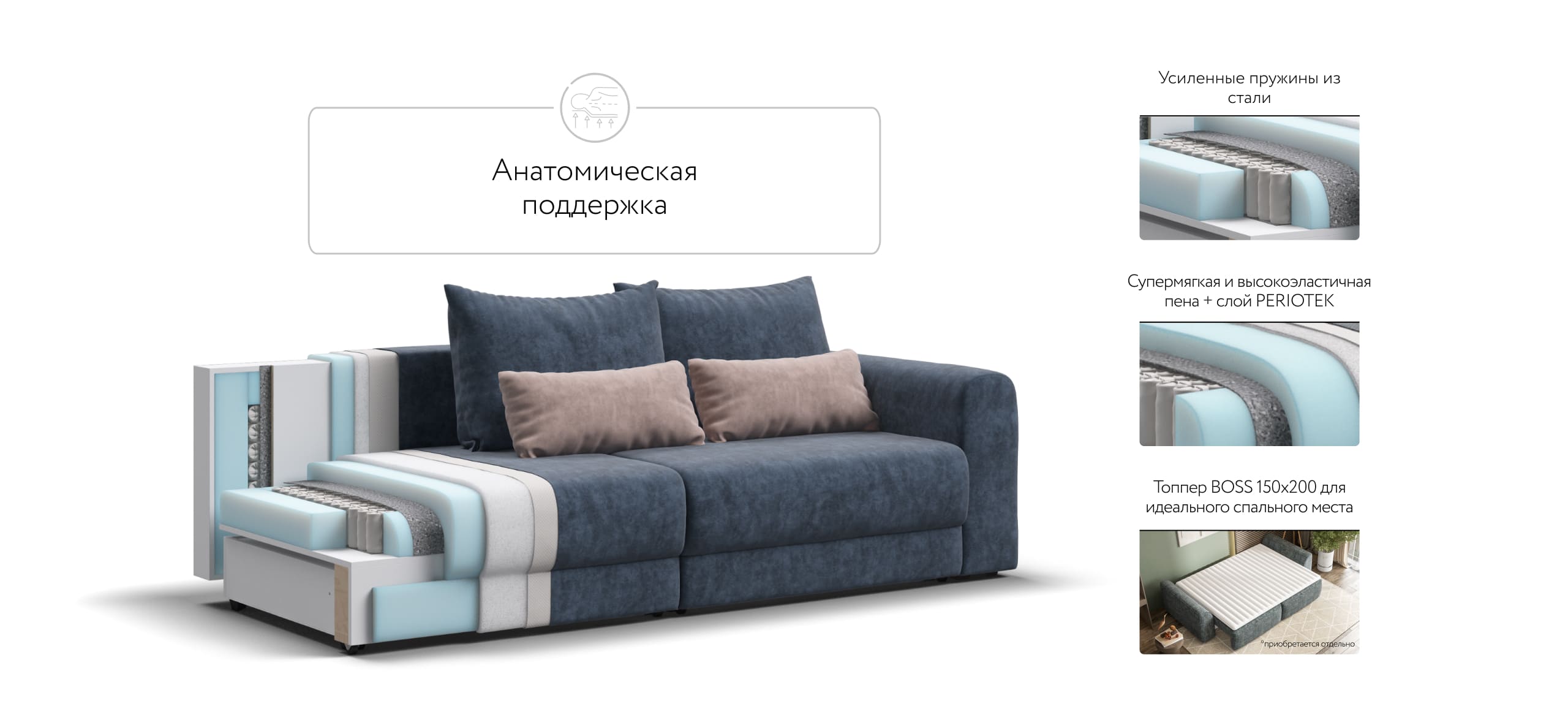 Ричмонд Модуль – Модульная система для комфортного отдыха. Суперудобная глубокая посадка и высокоэластичная пена с дополнительным слоем Периотек создадут максимальный комфорт во время отдыха.